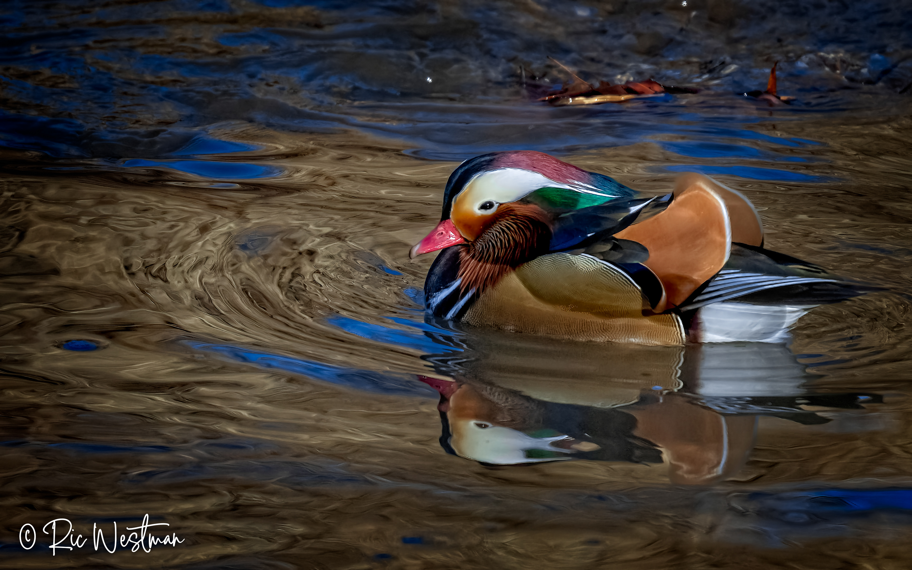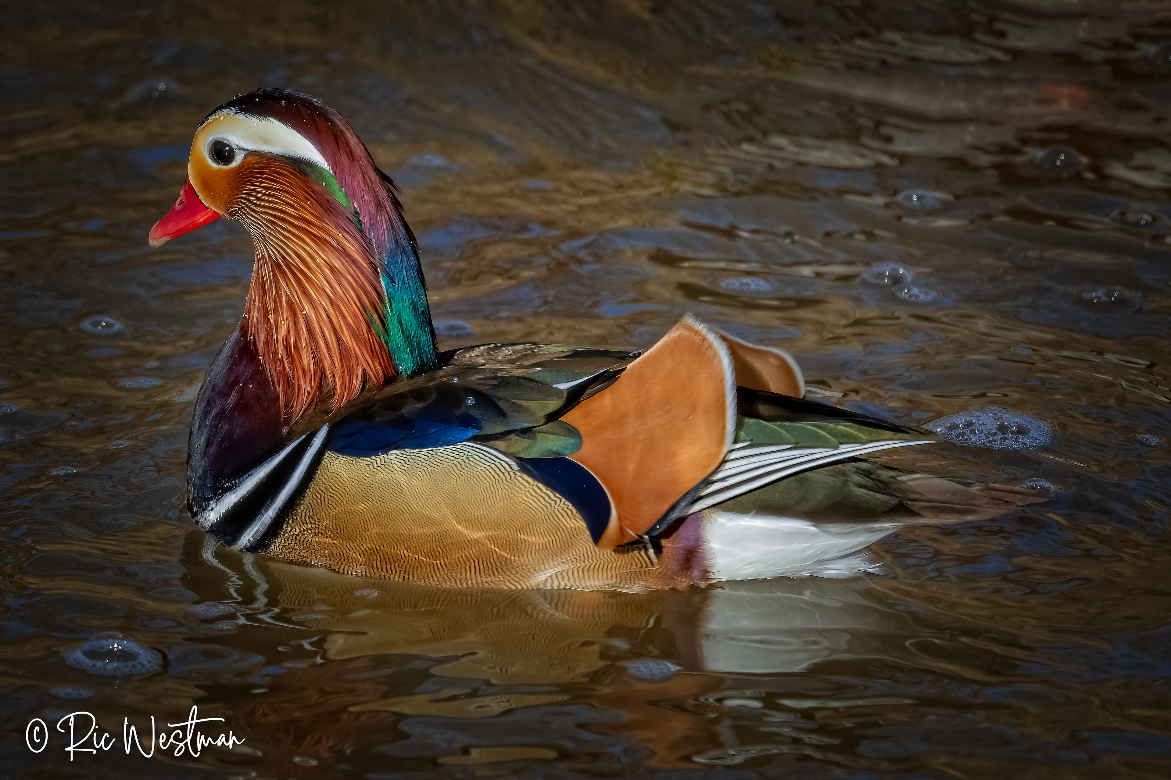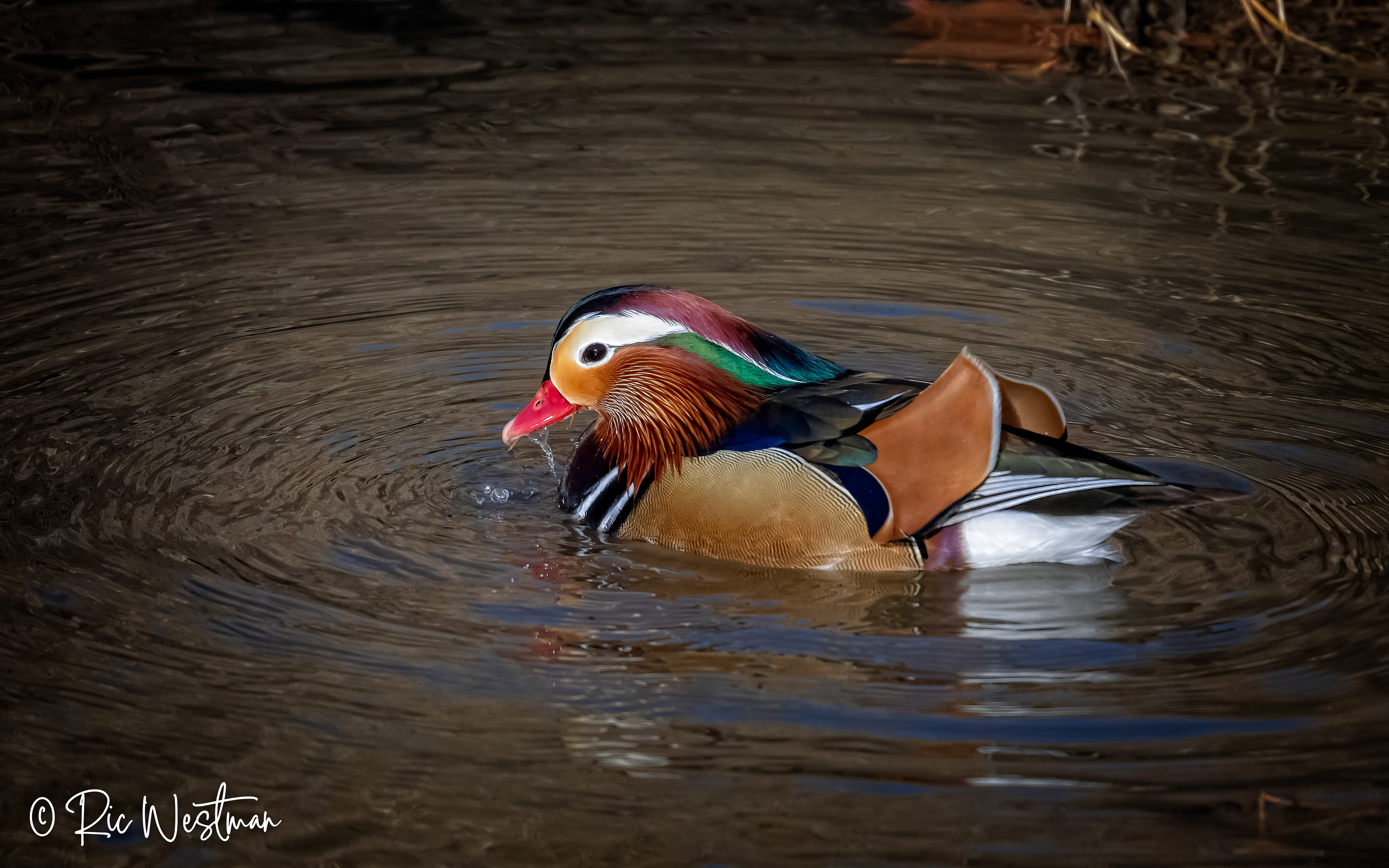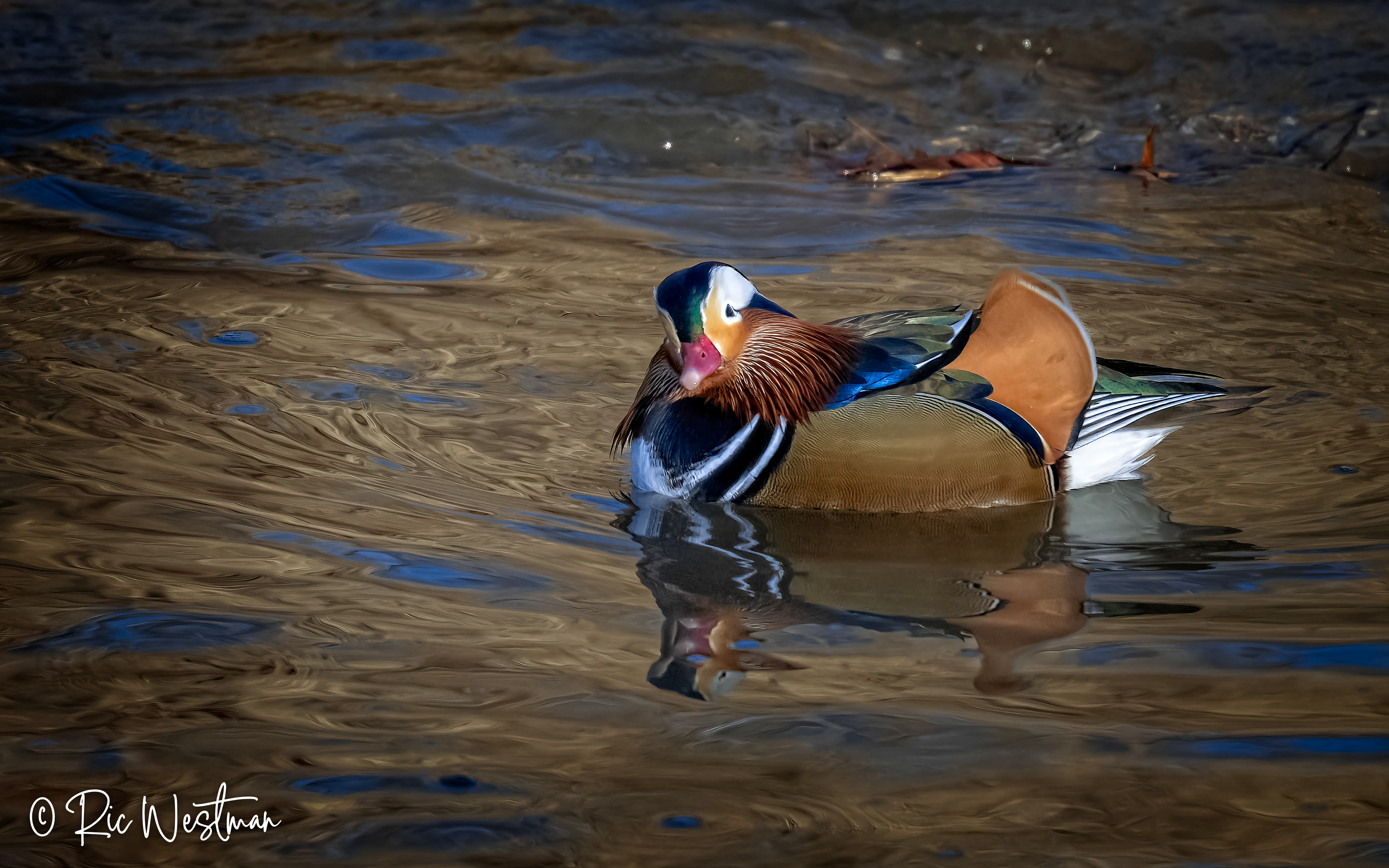 A lone Mandarin duck suddenly appeared in a small creek in Topeka , KS in 2021