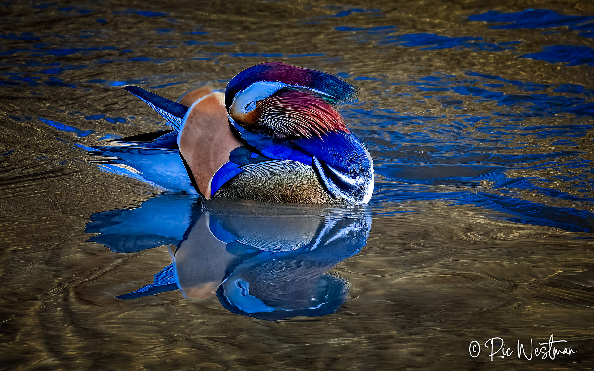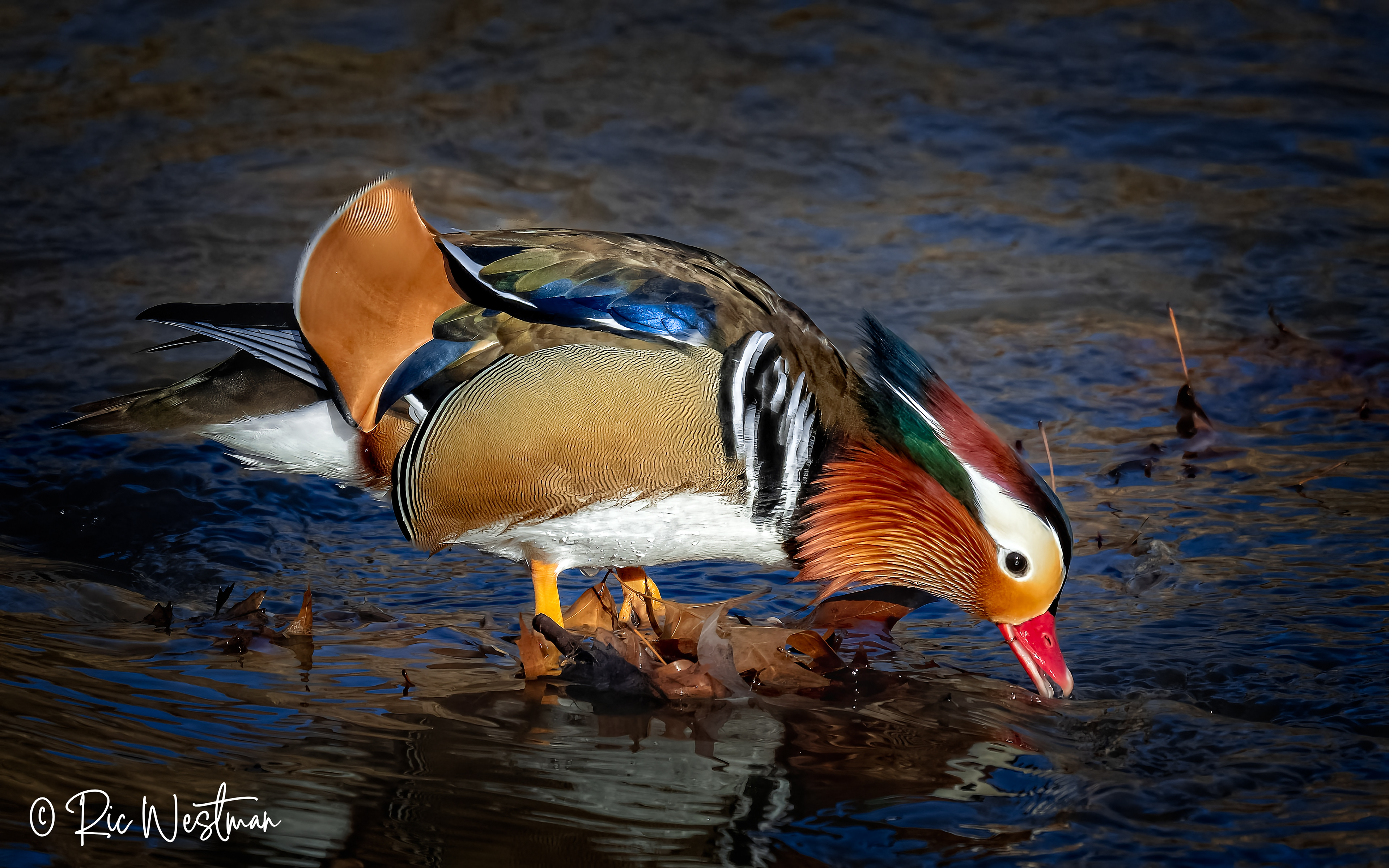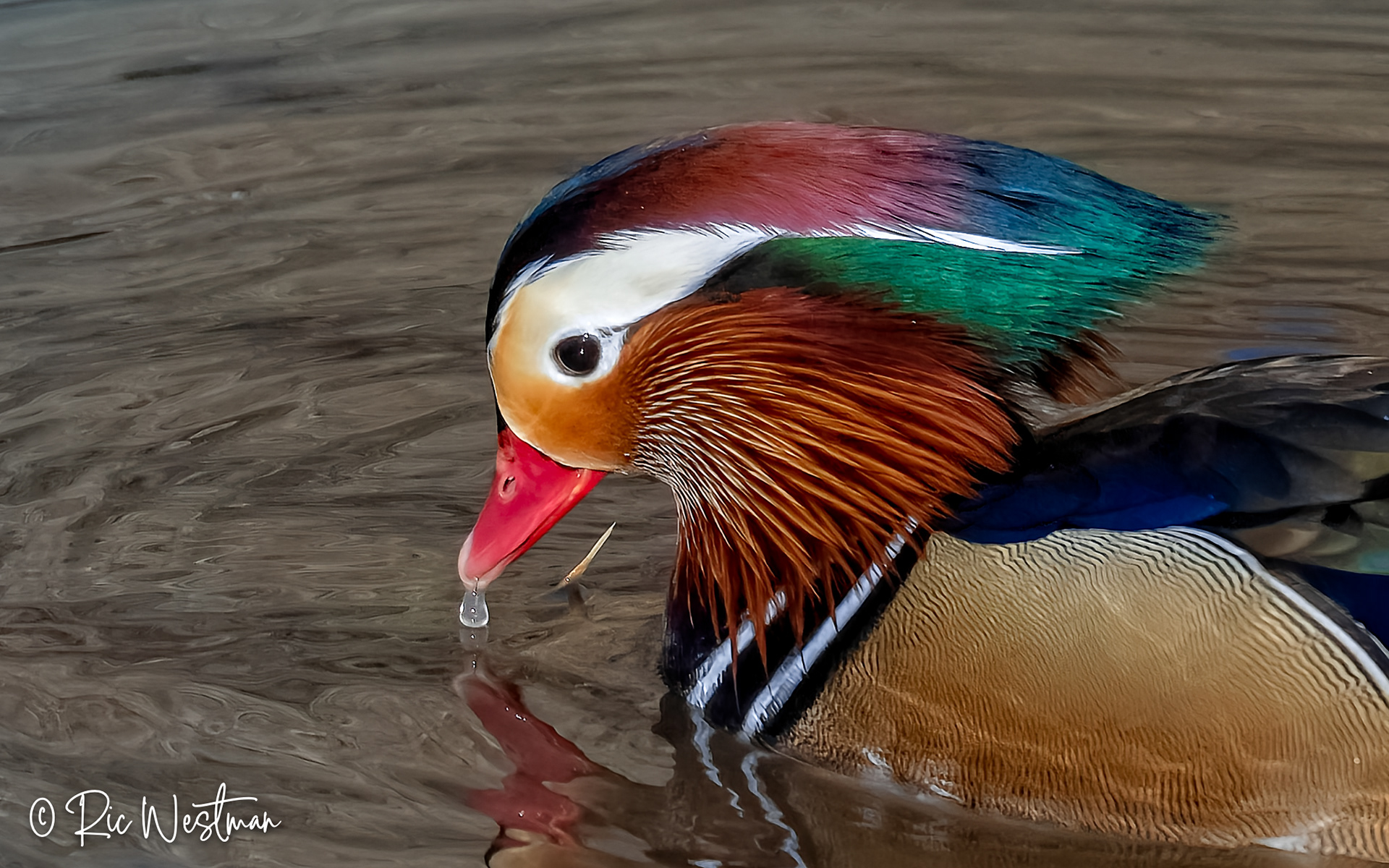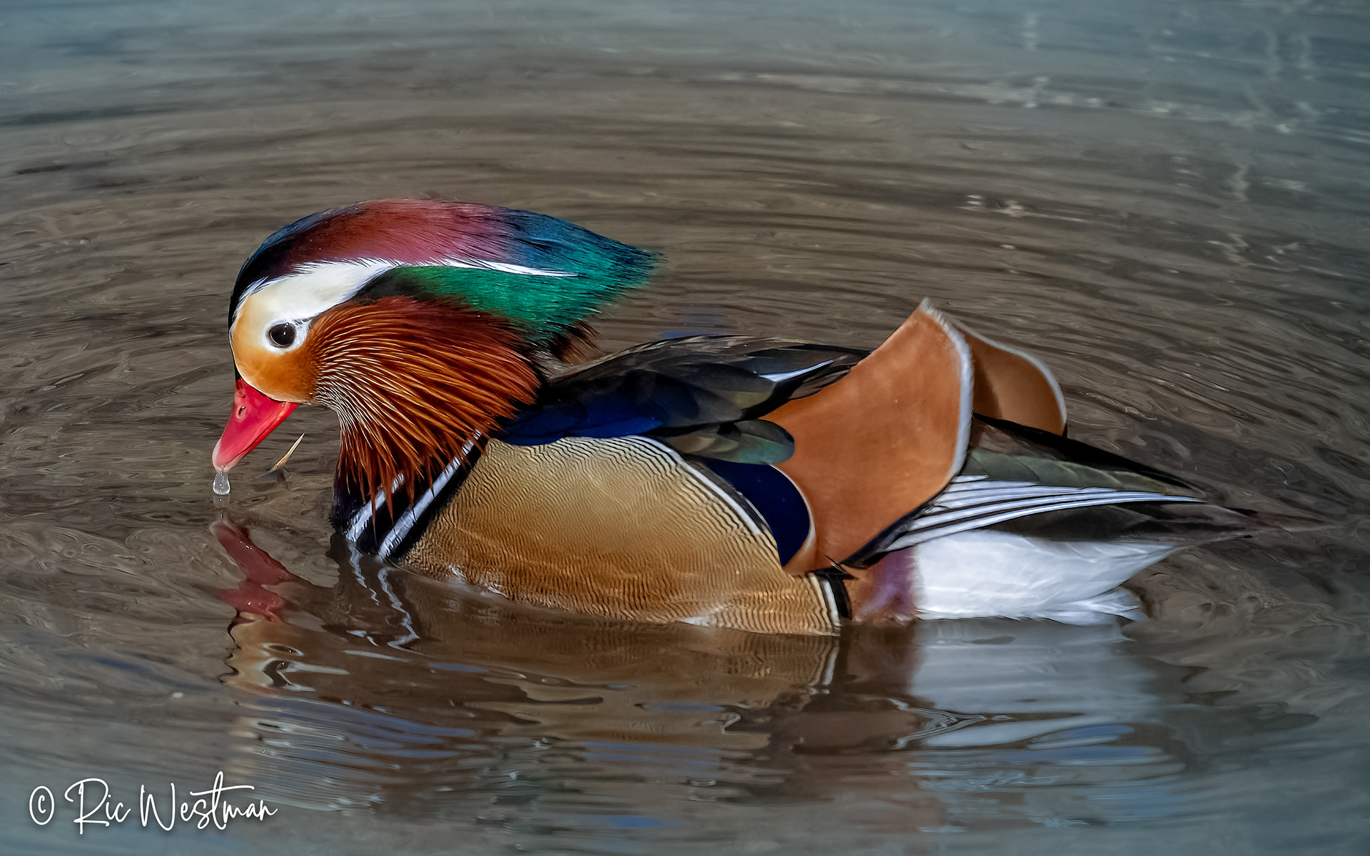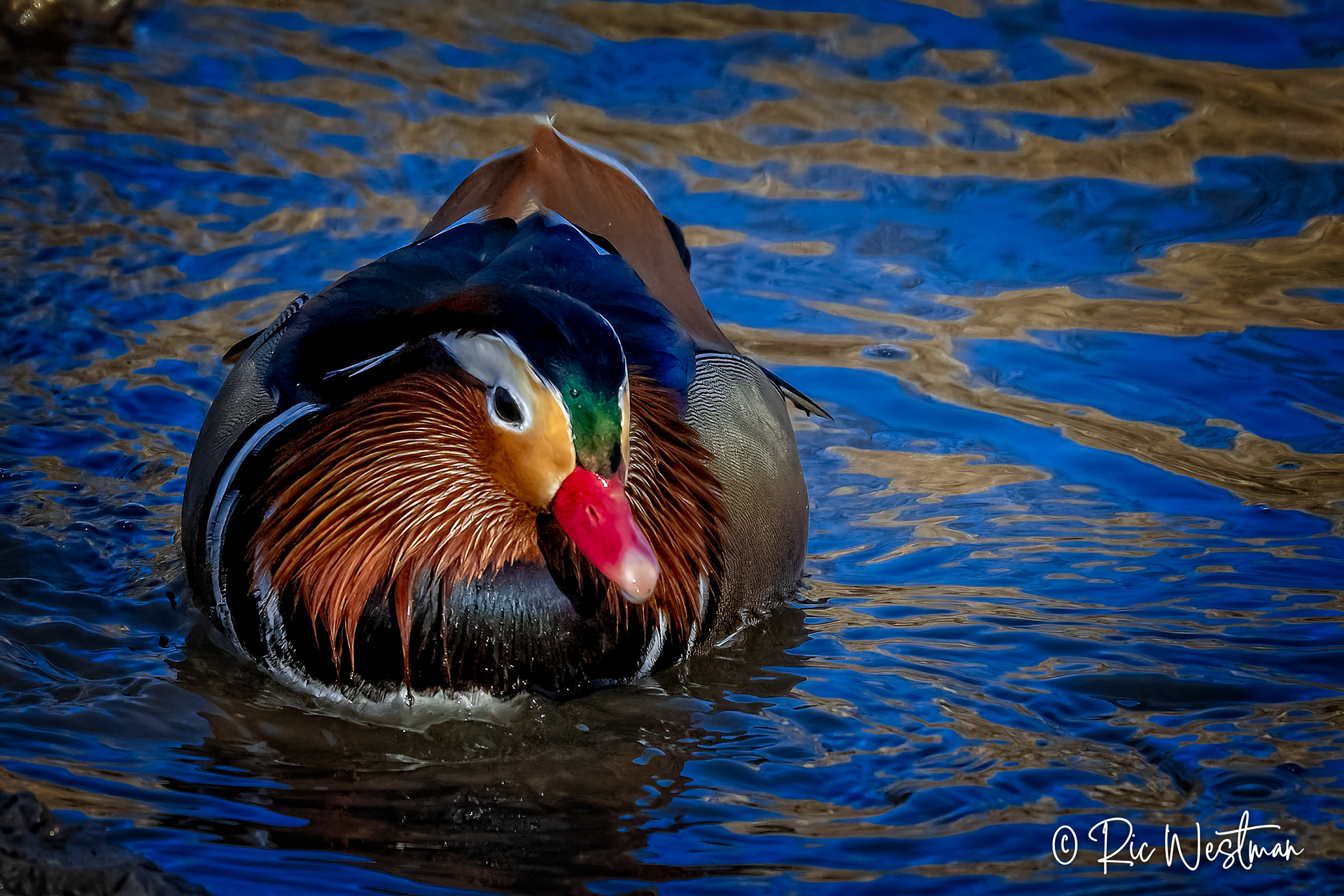 A lone Mandarin duck suddenly appeared in a small creek in Topeka , KS in 2021
