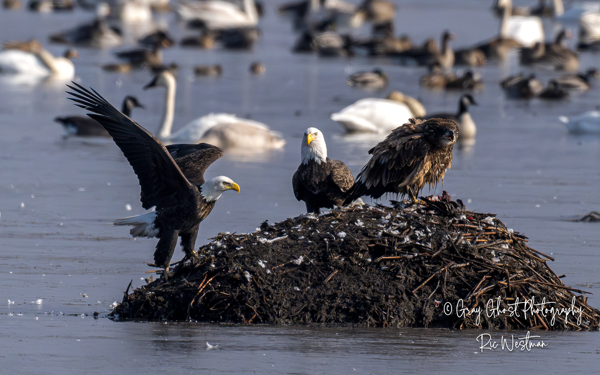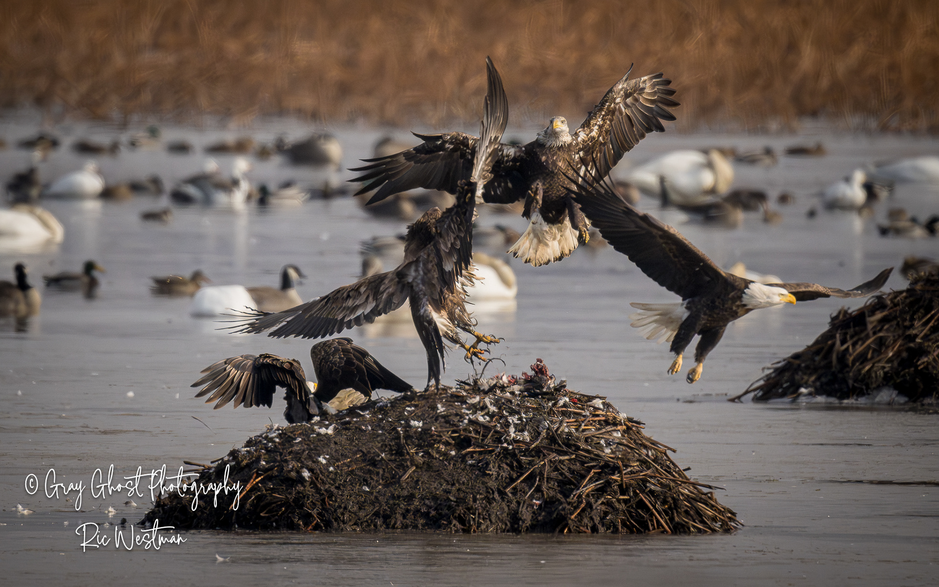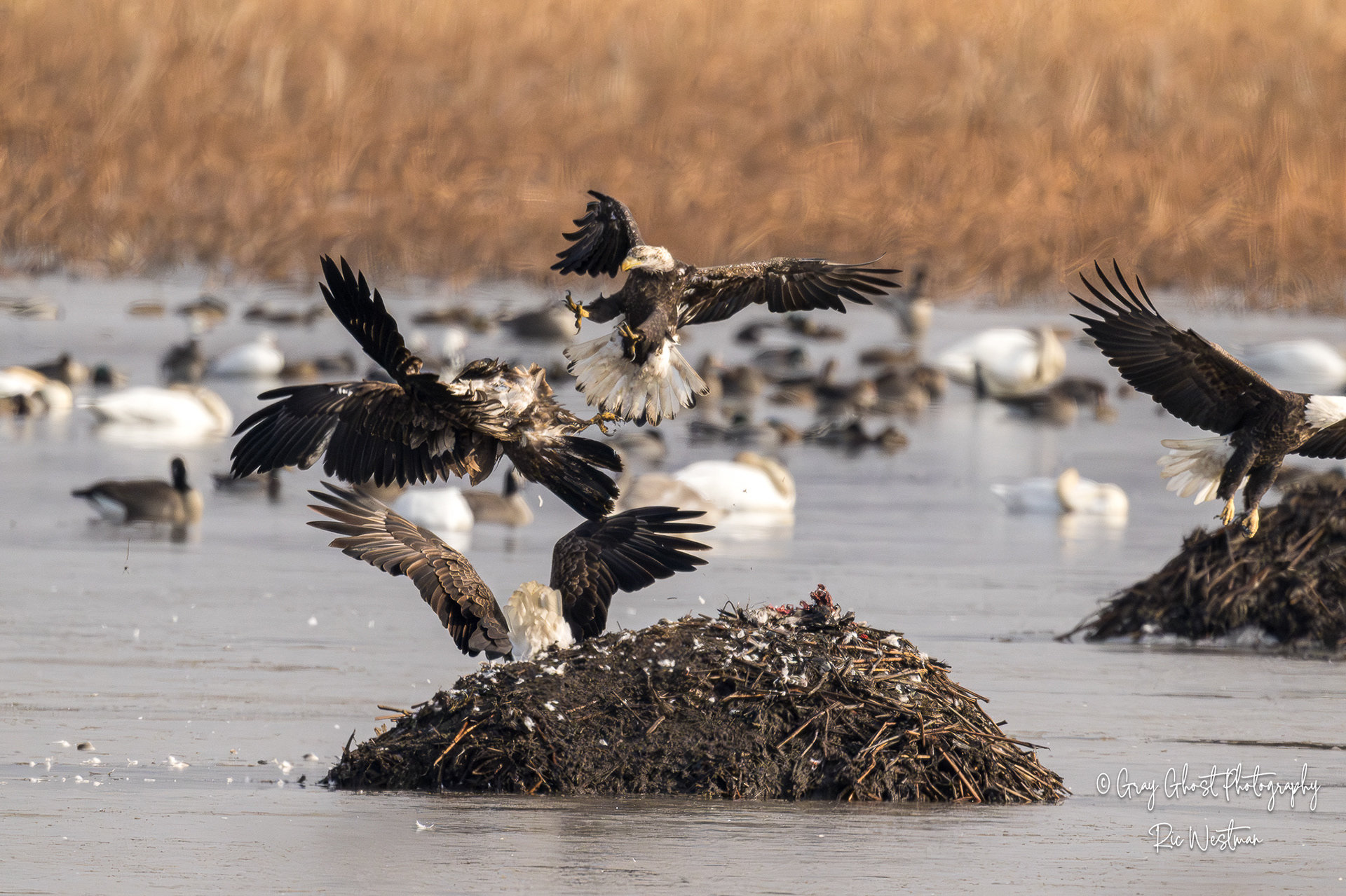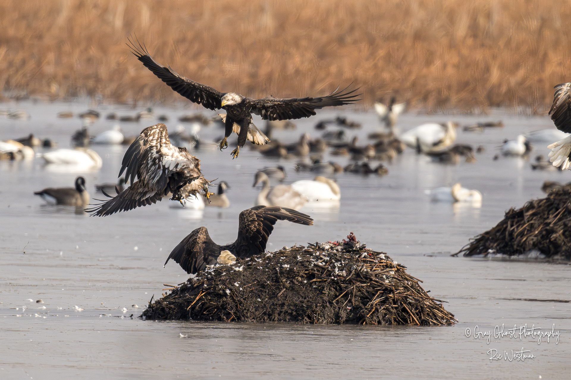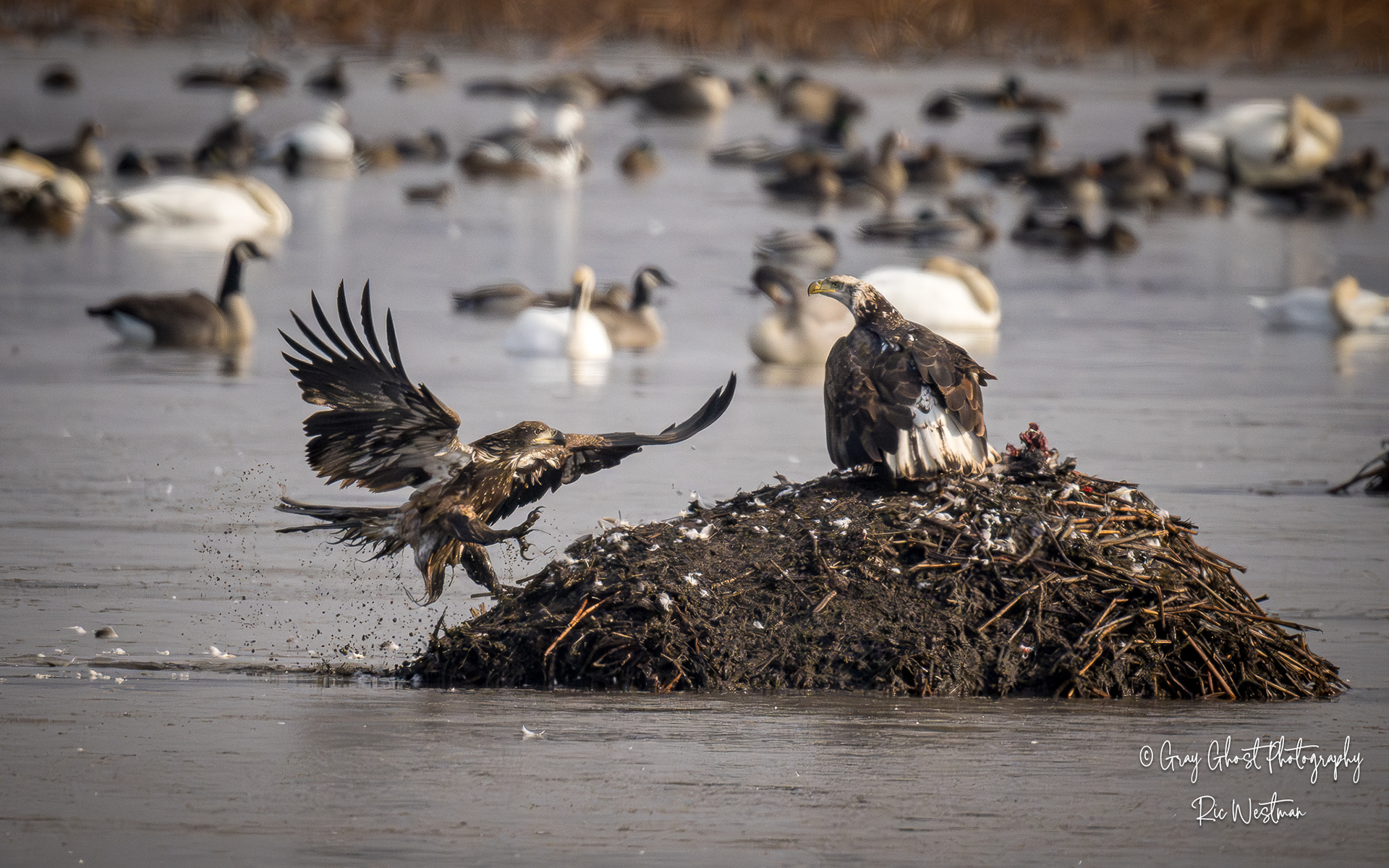 Wintering eagles and snow geese make for some interesting moments.