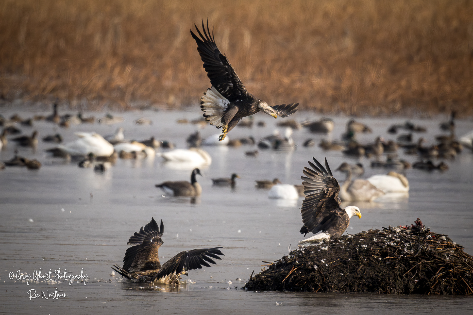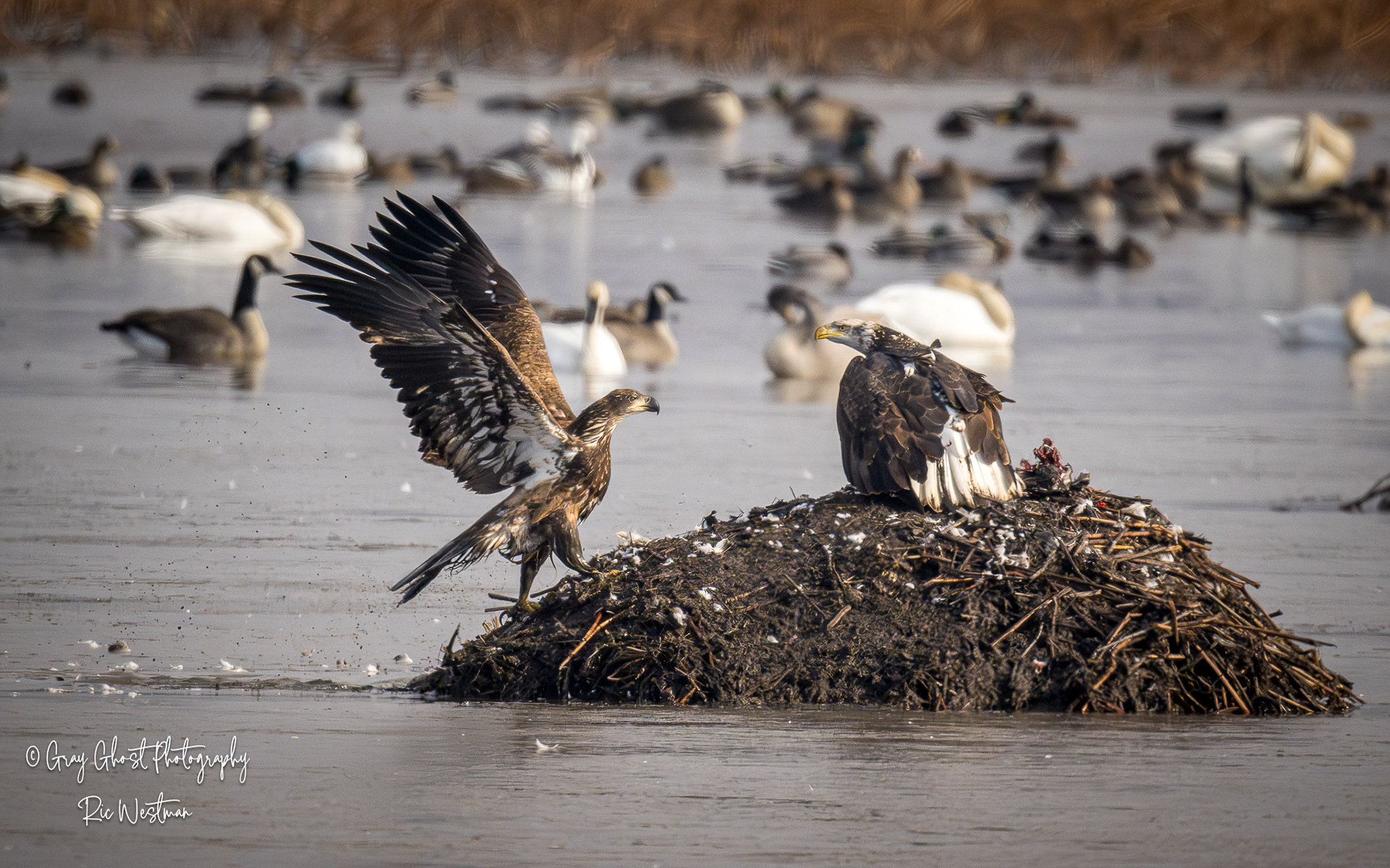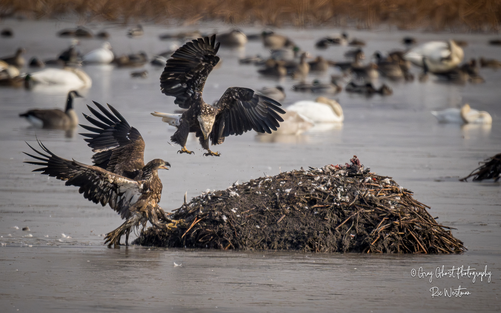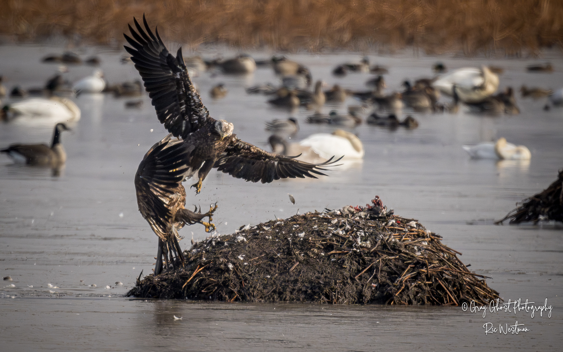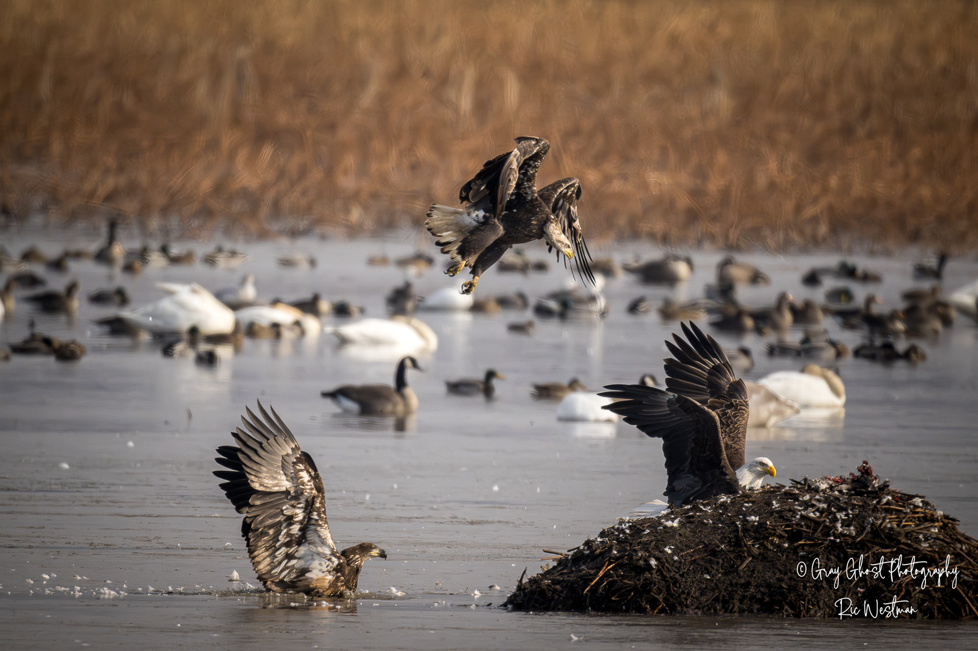 Wintering eagles and snow geese make for some interesting moments.