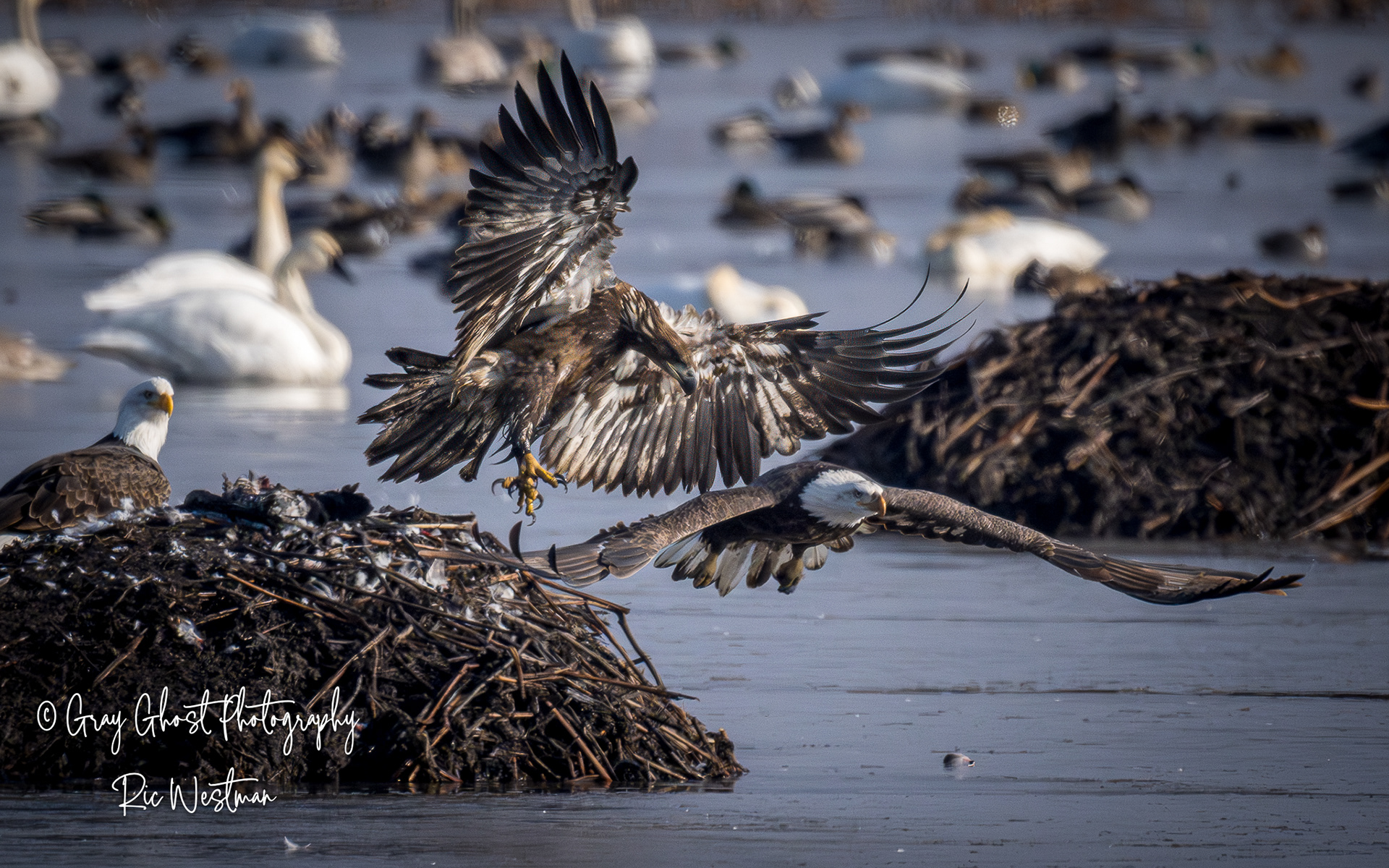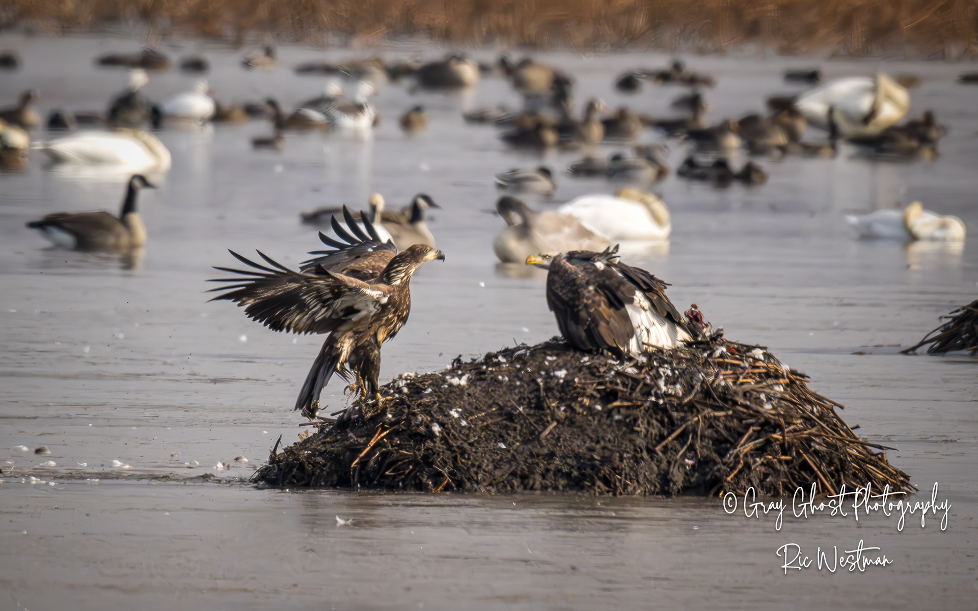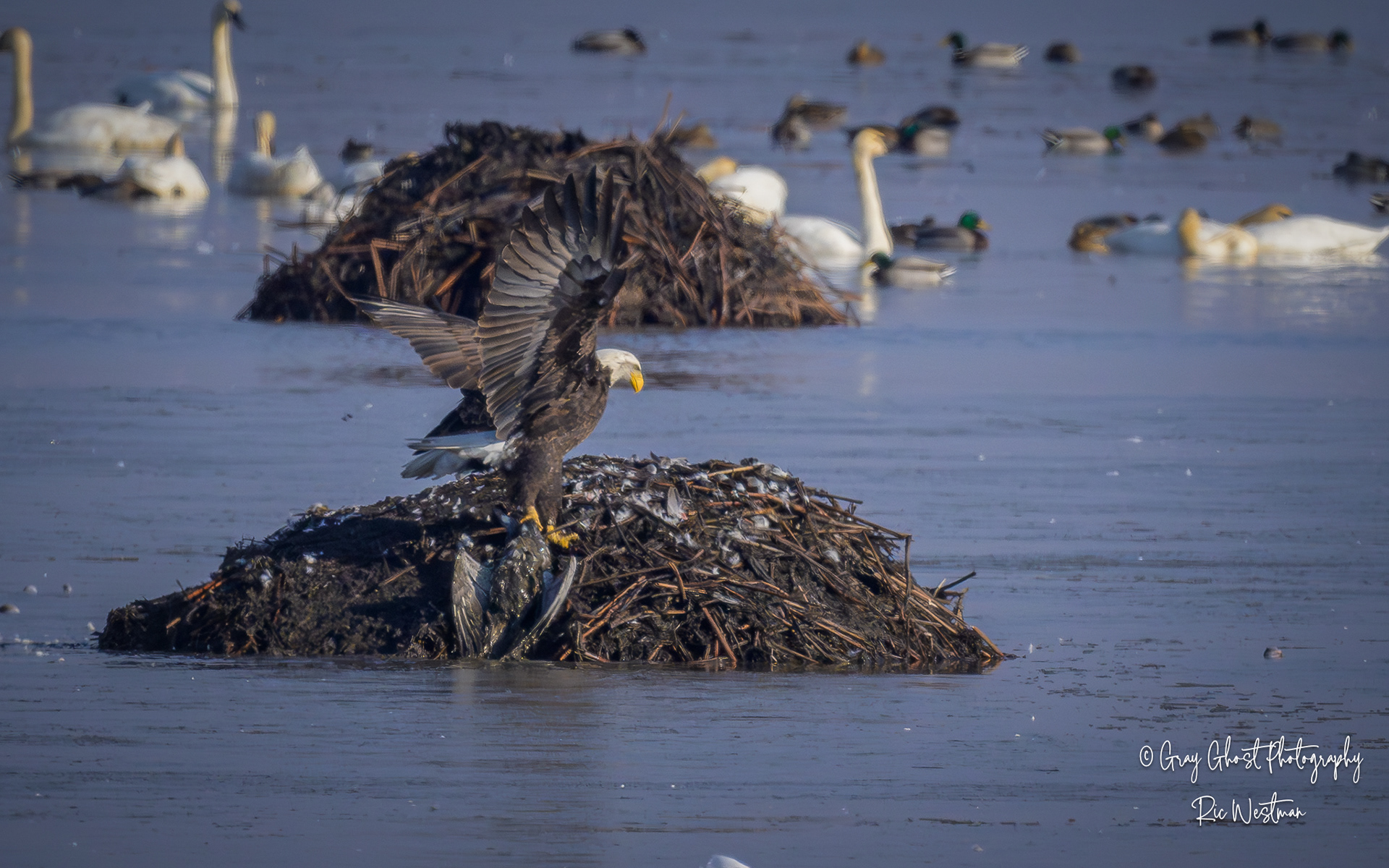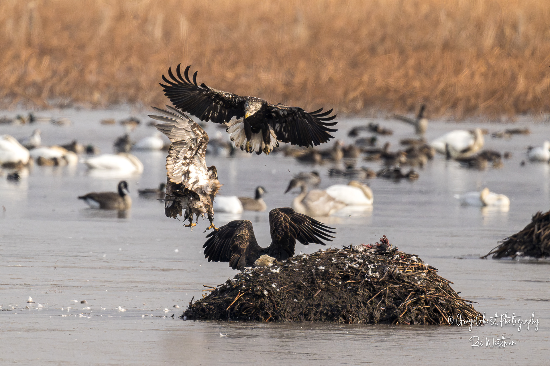 Wintering eagles and snow geese make for some interesting moments.