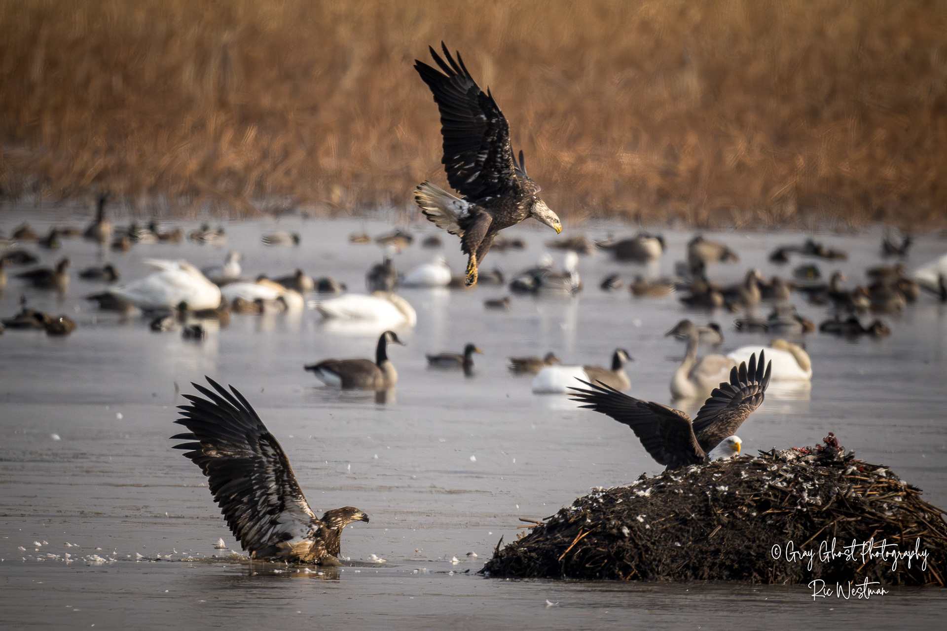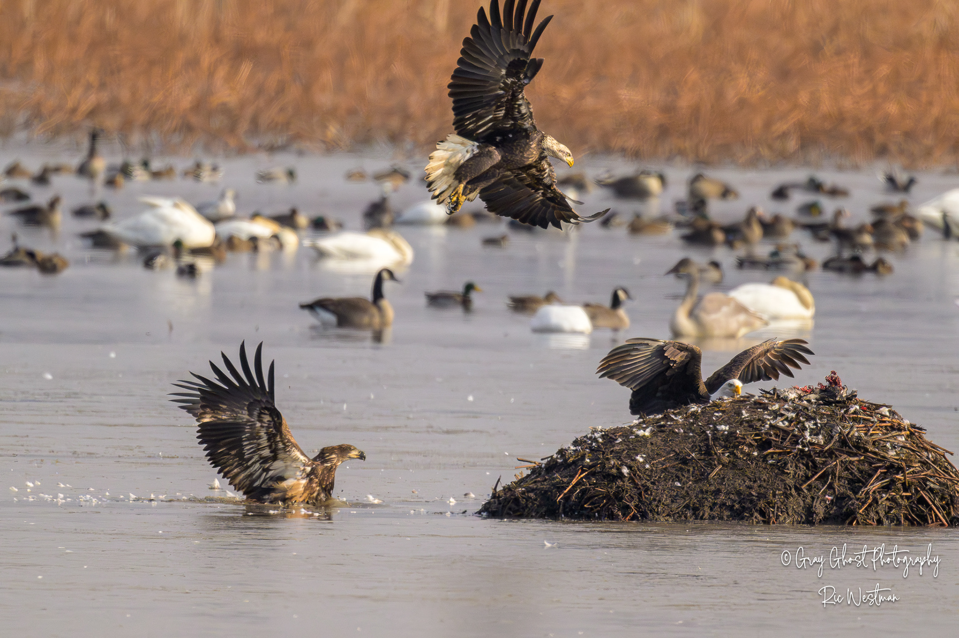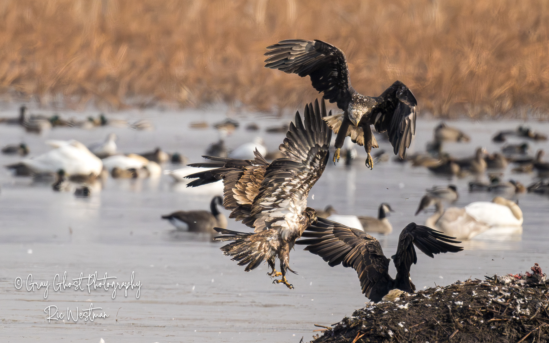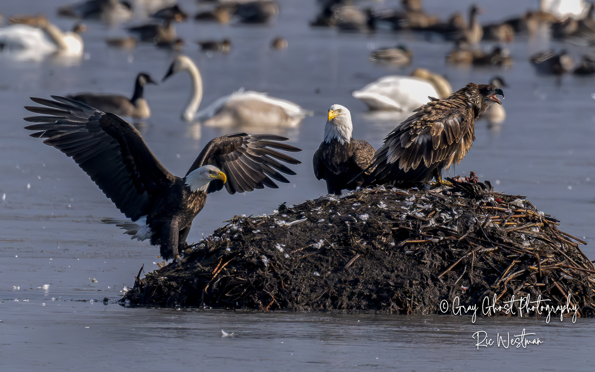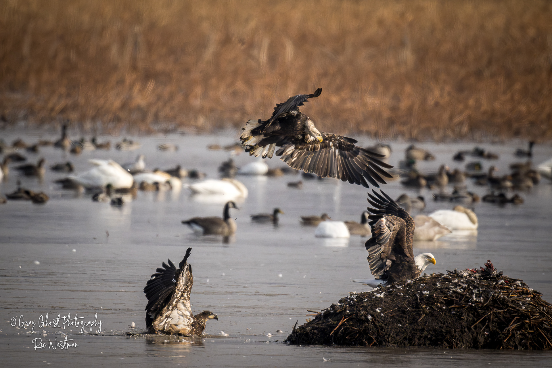 Wintering eagles and snow geese make for some interesting moments.