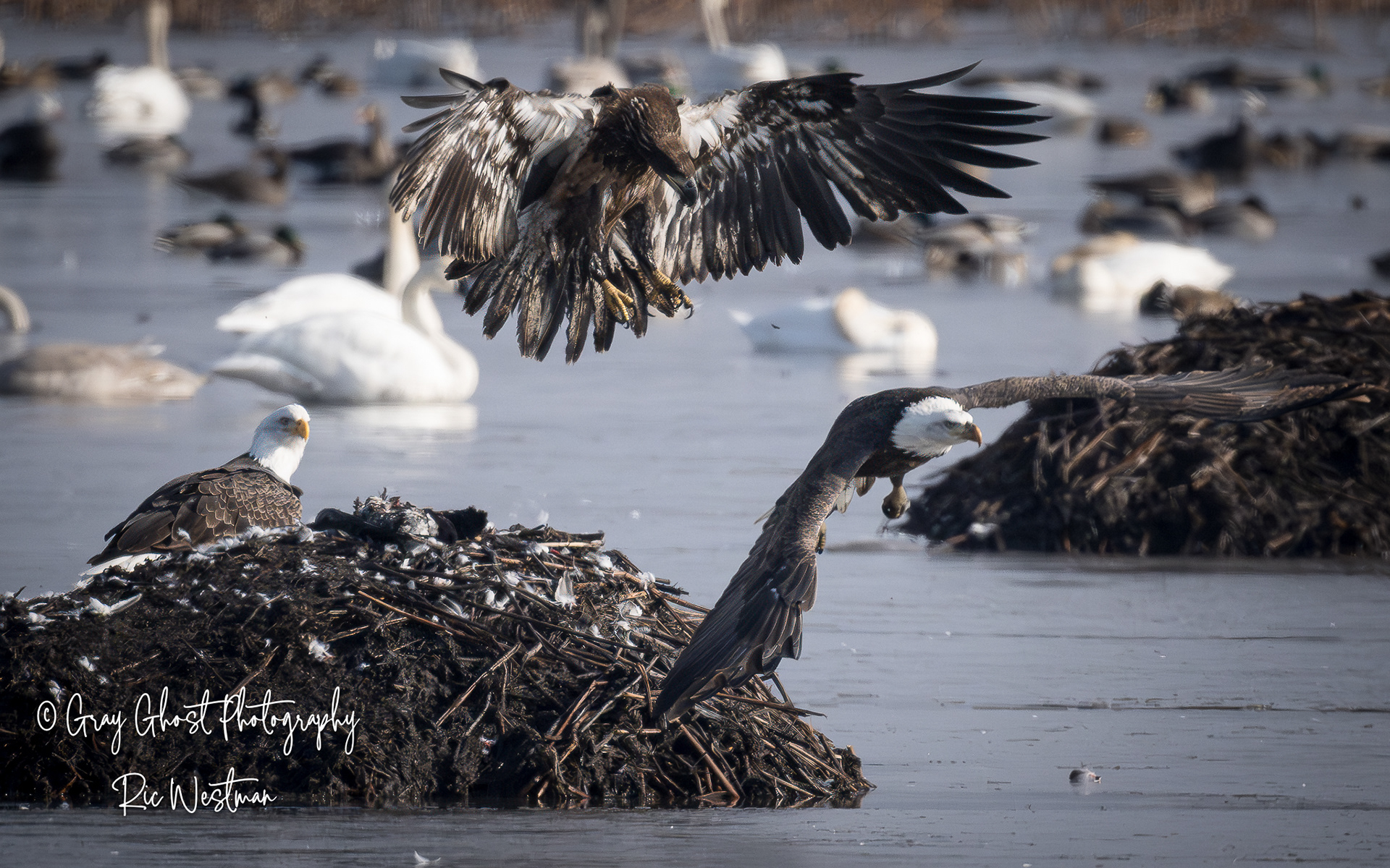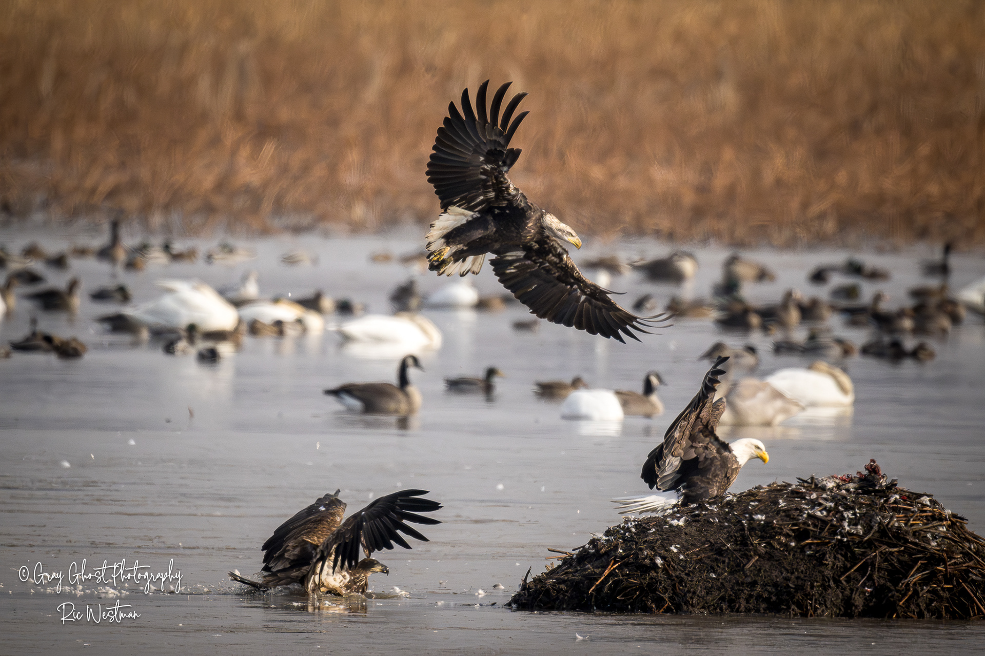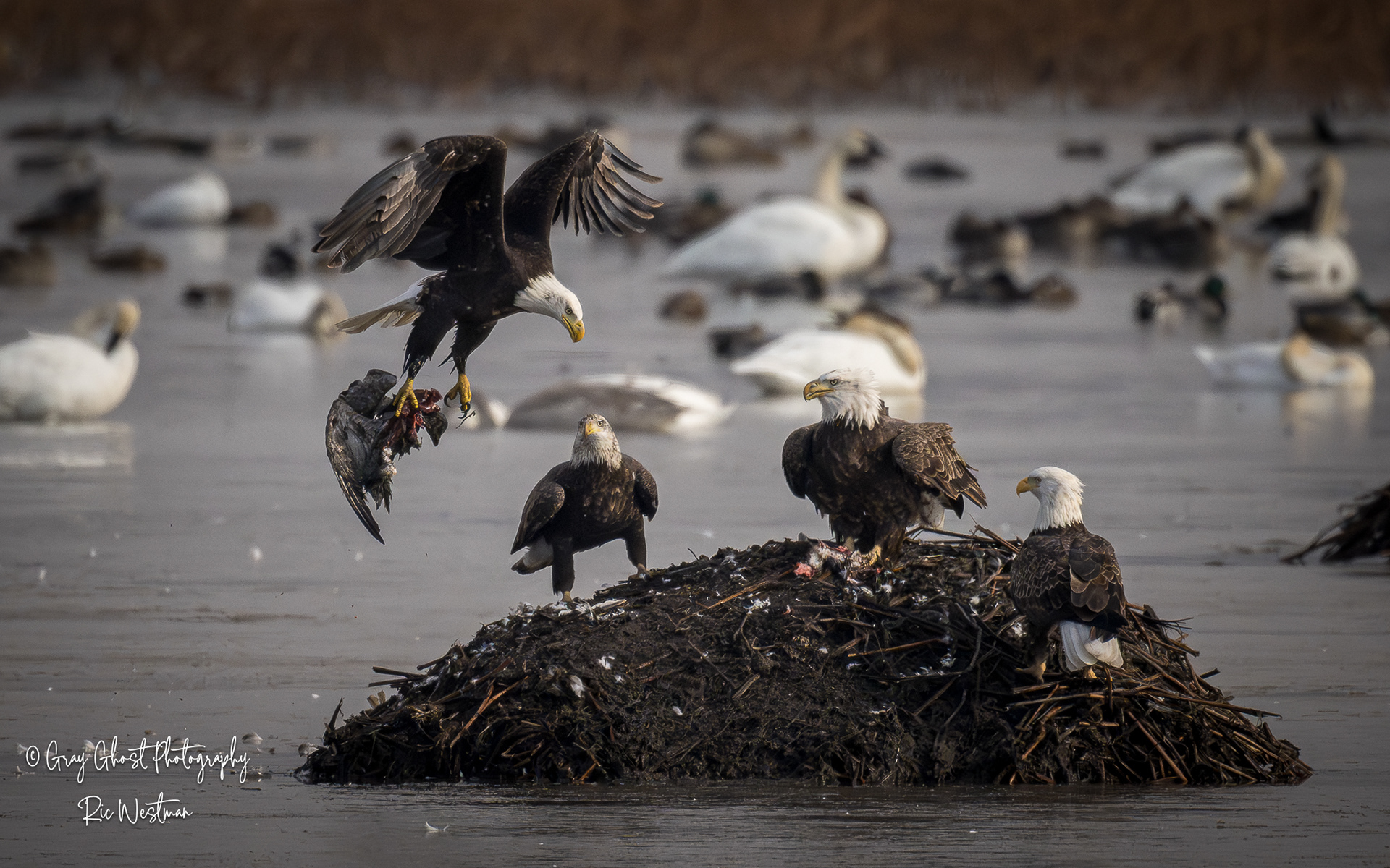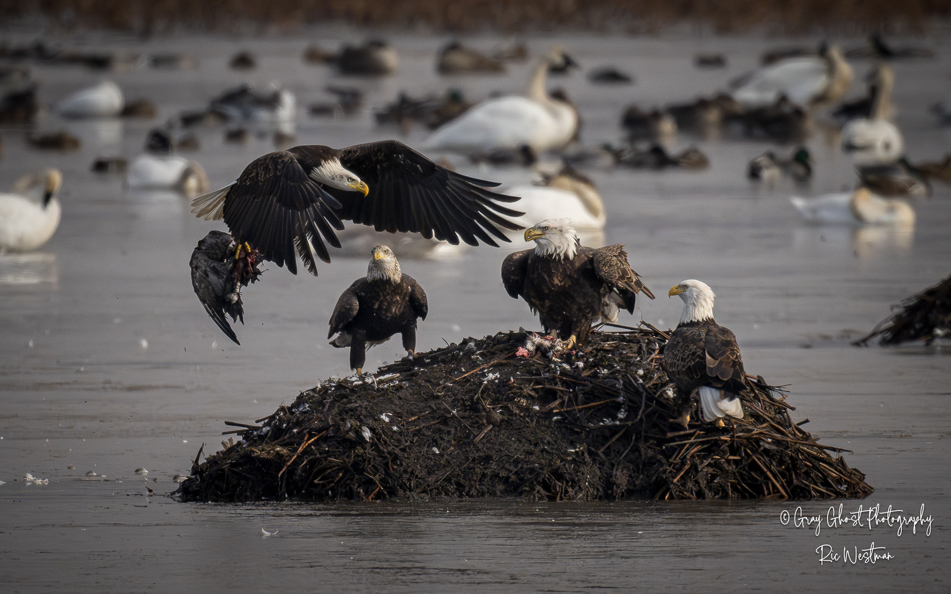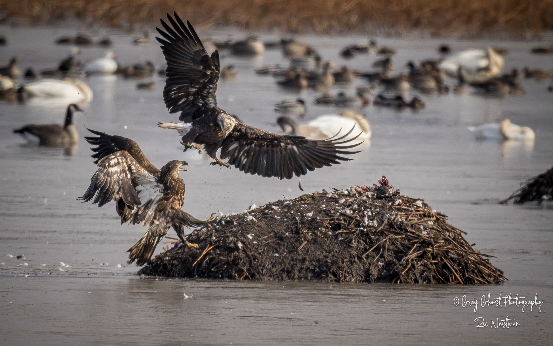 Wintering eagles and snow geese make for some interesting moments.