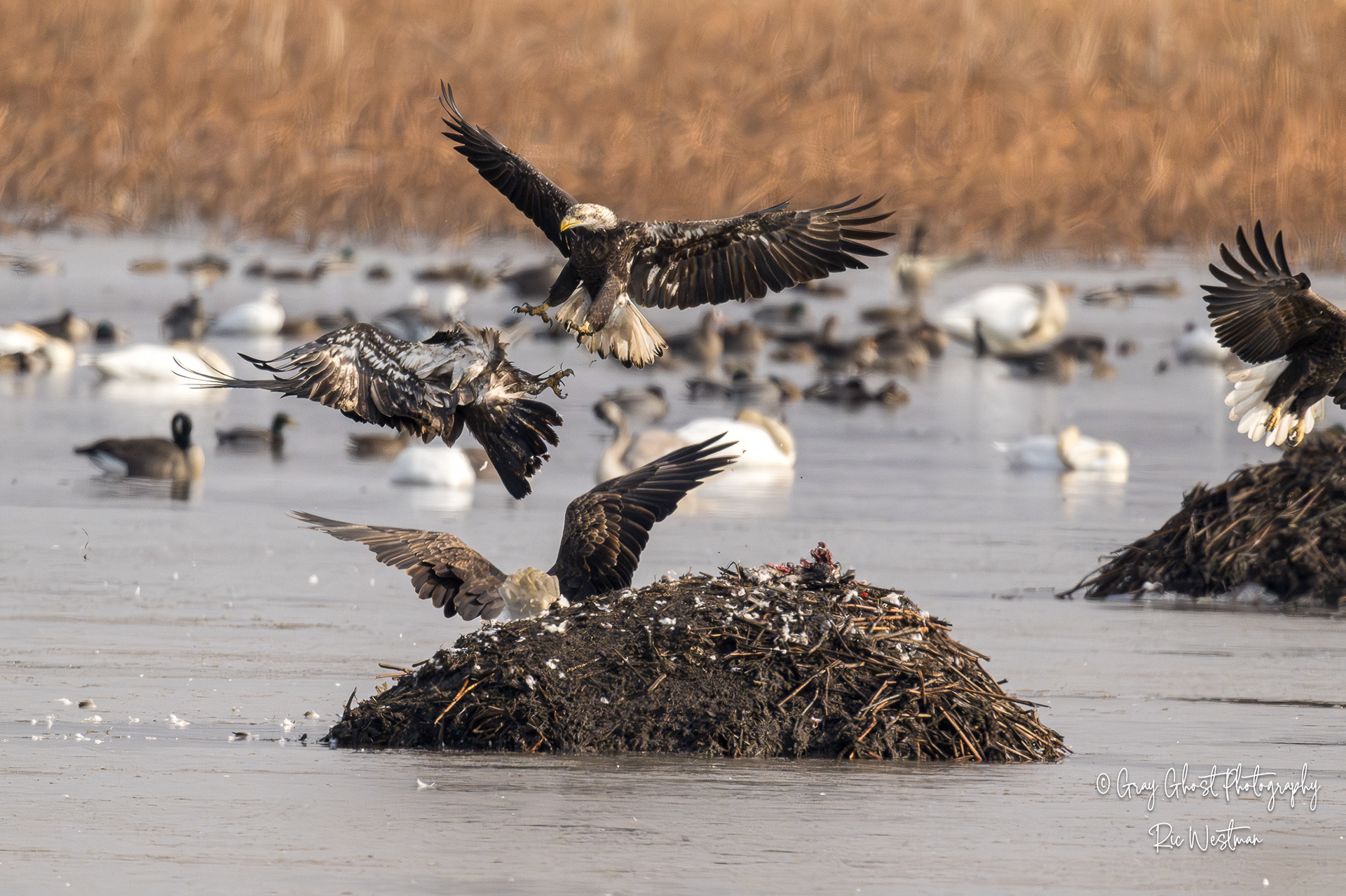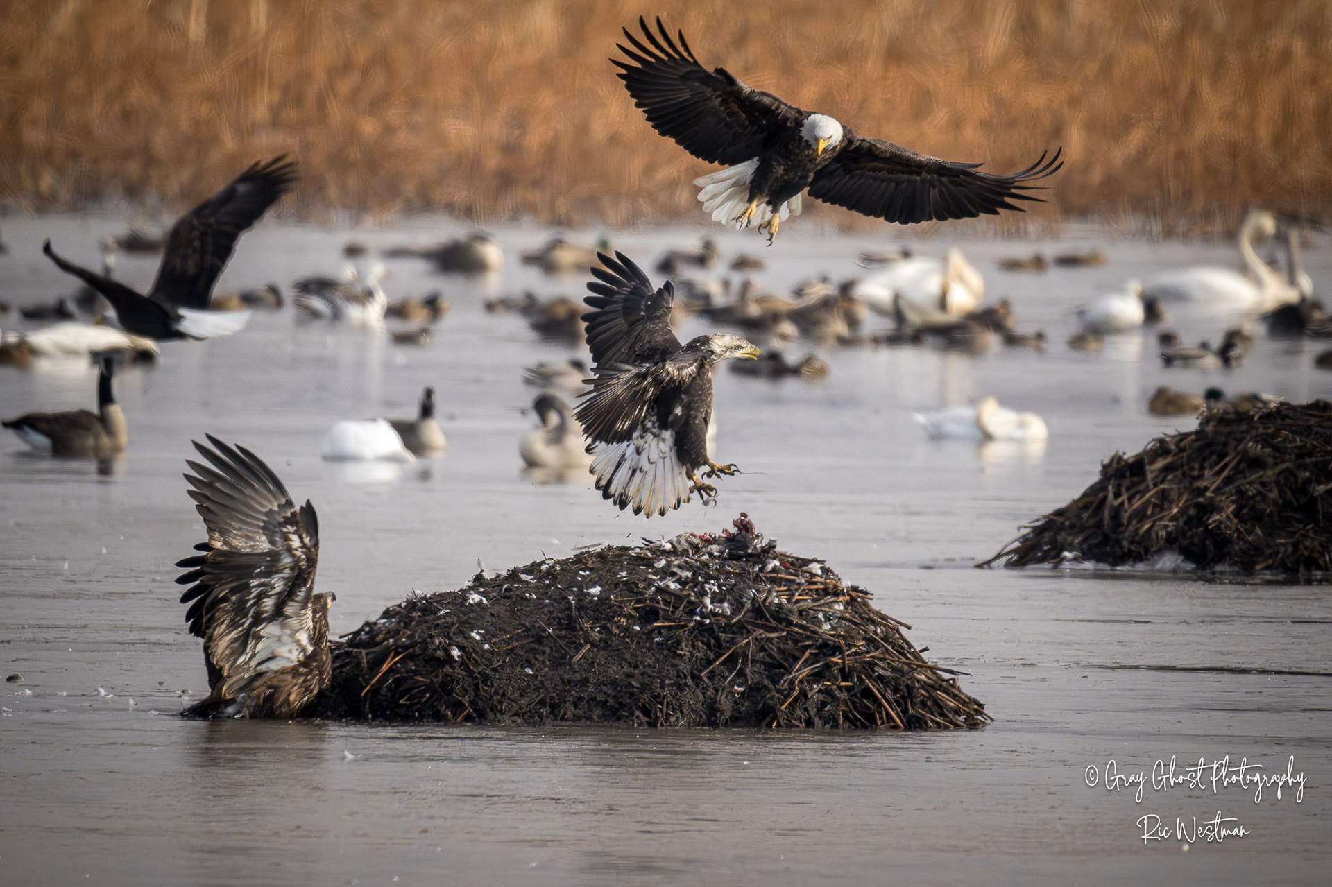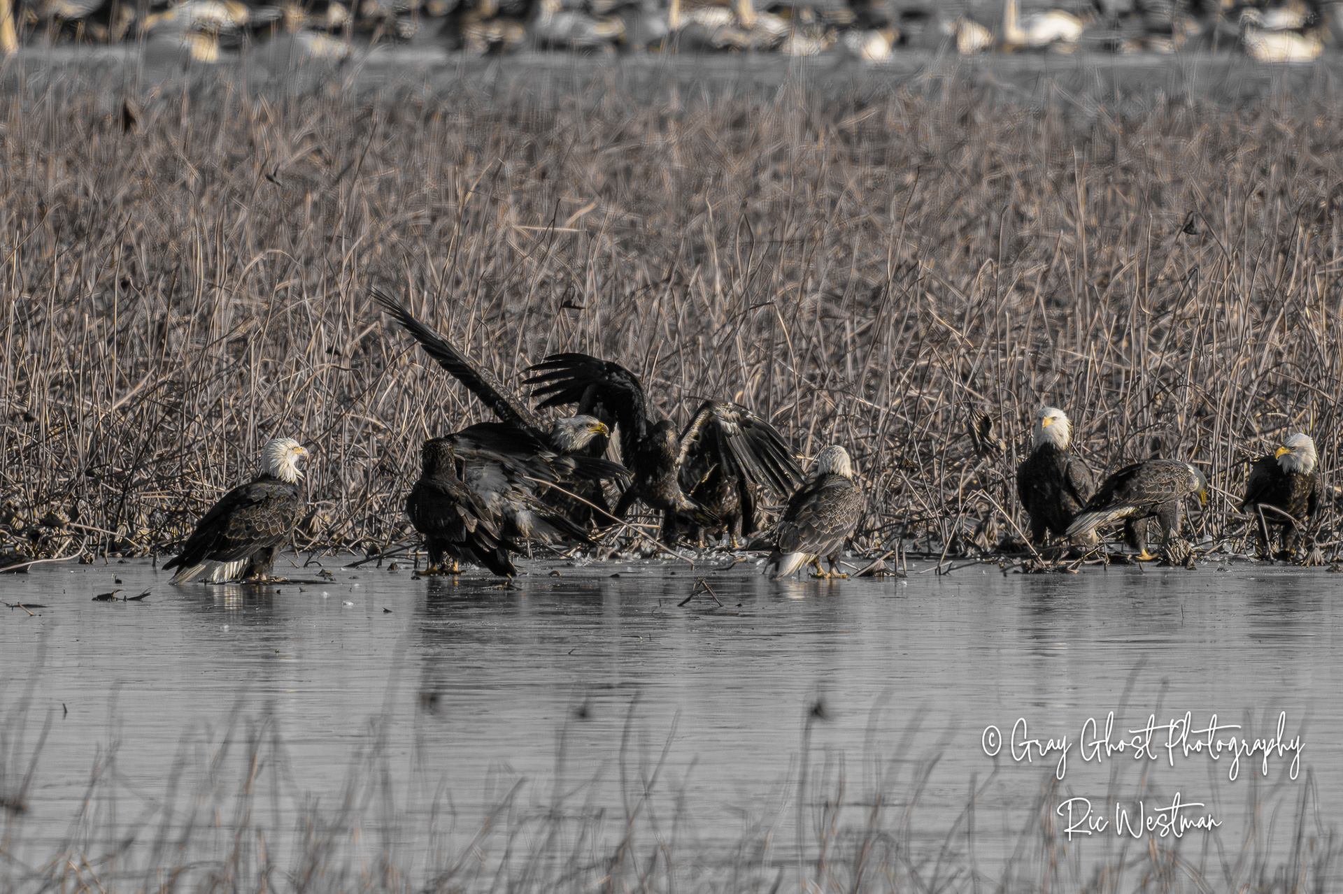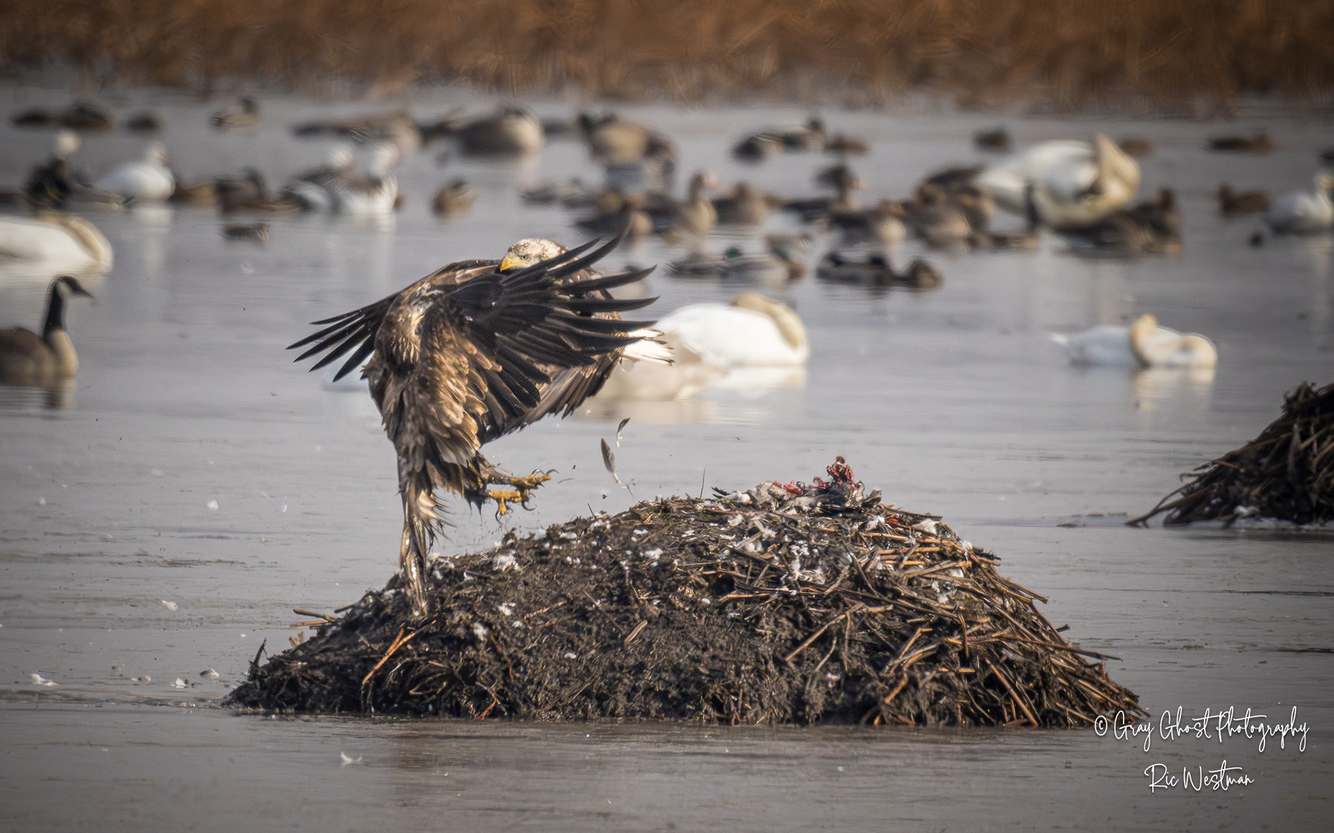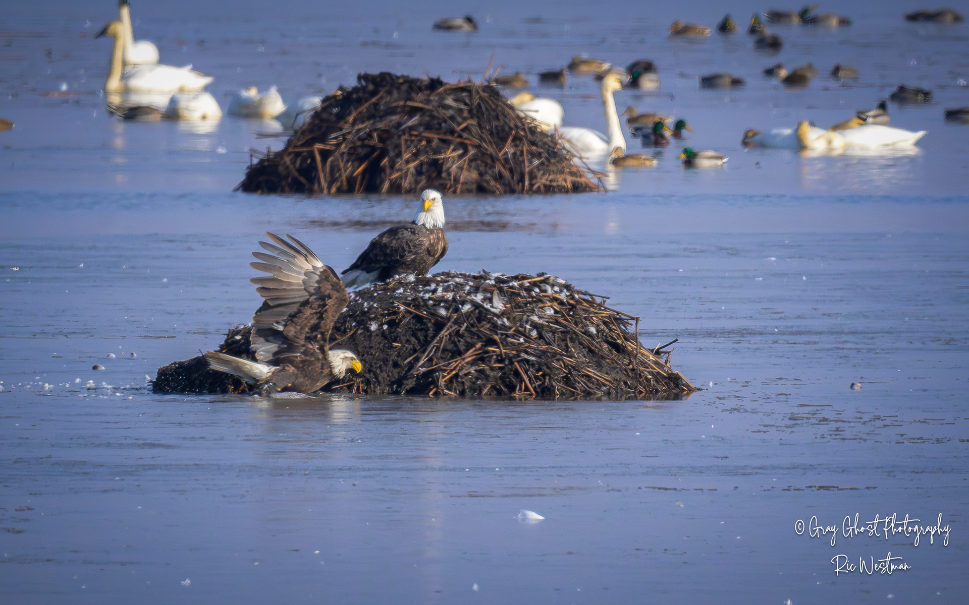 Wintering eagles and snow geese make for some interesting moments.
