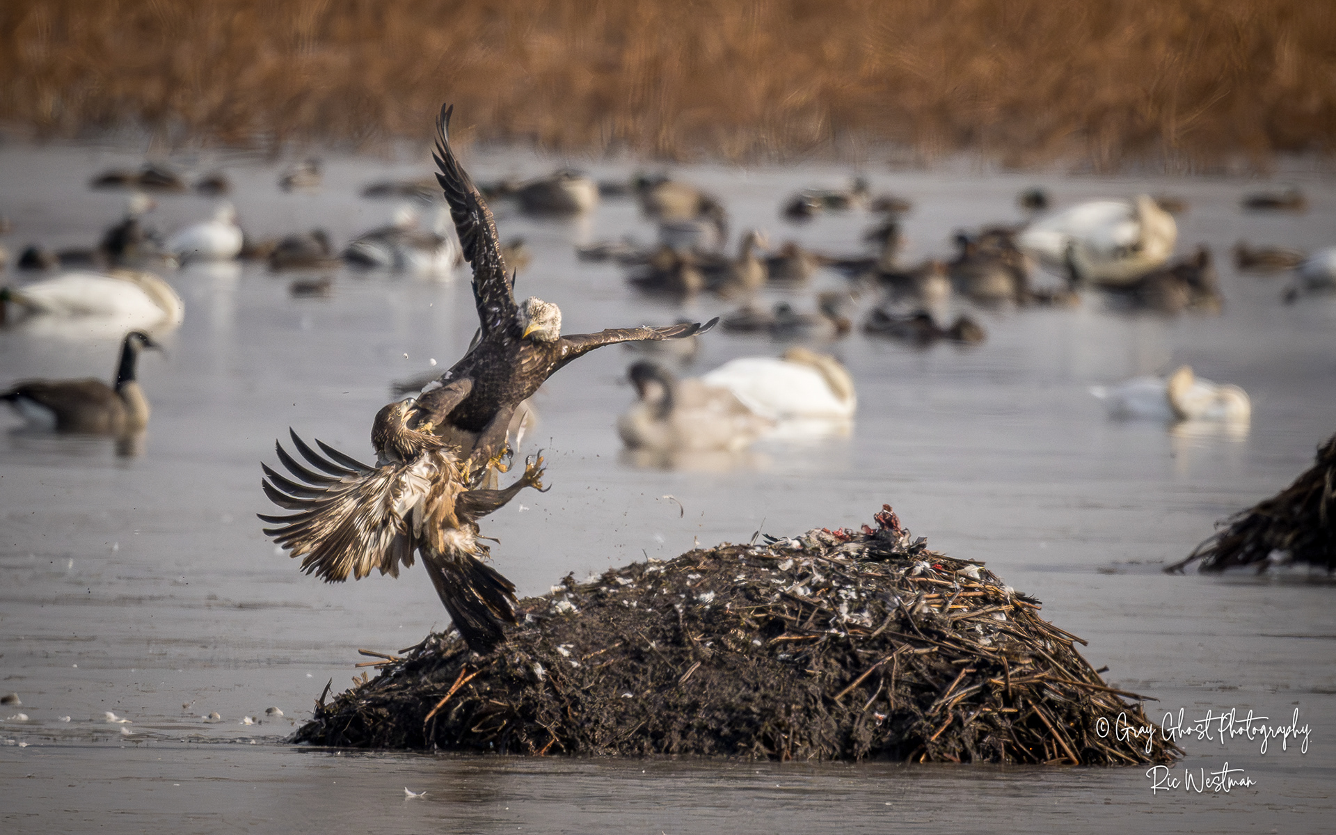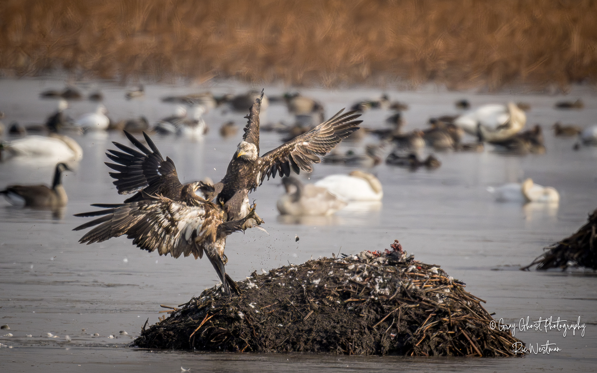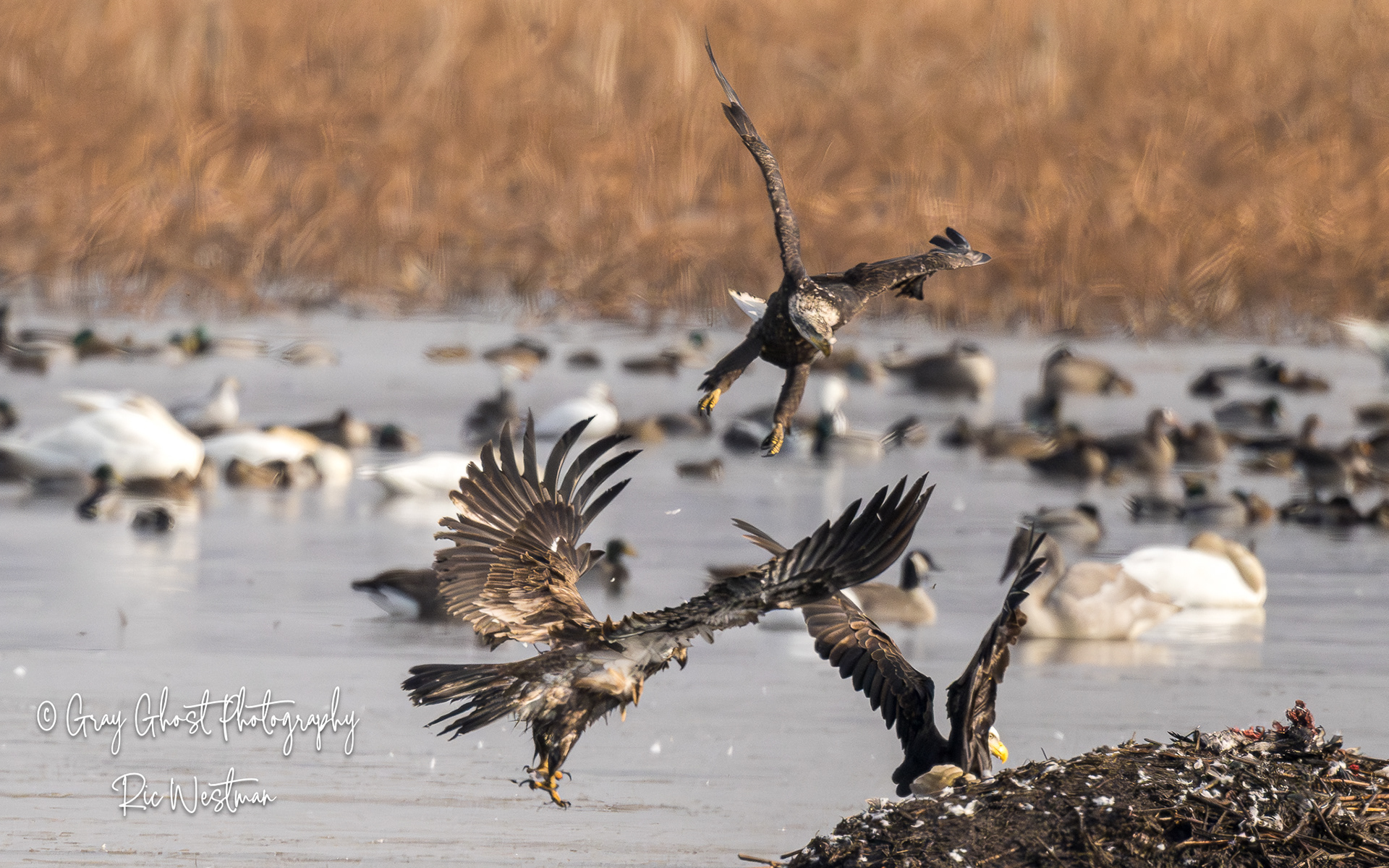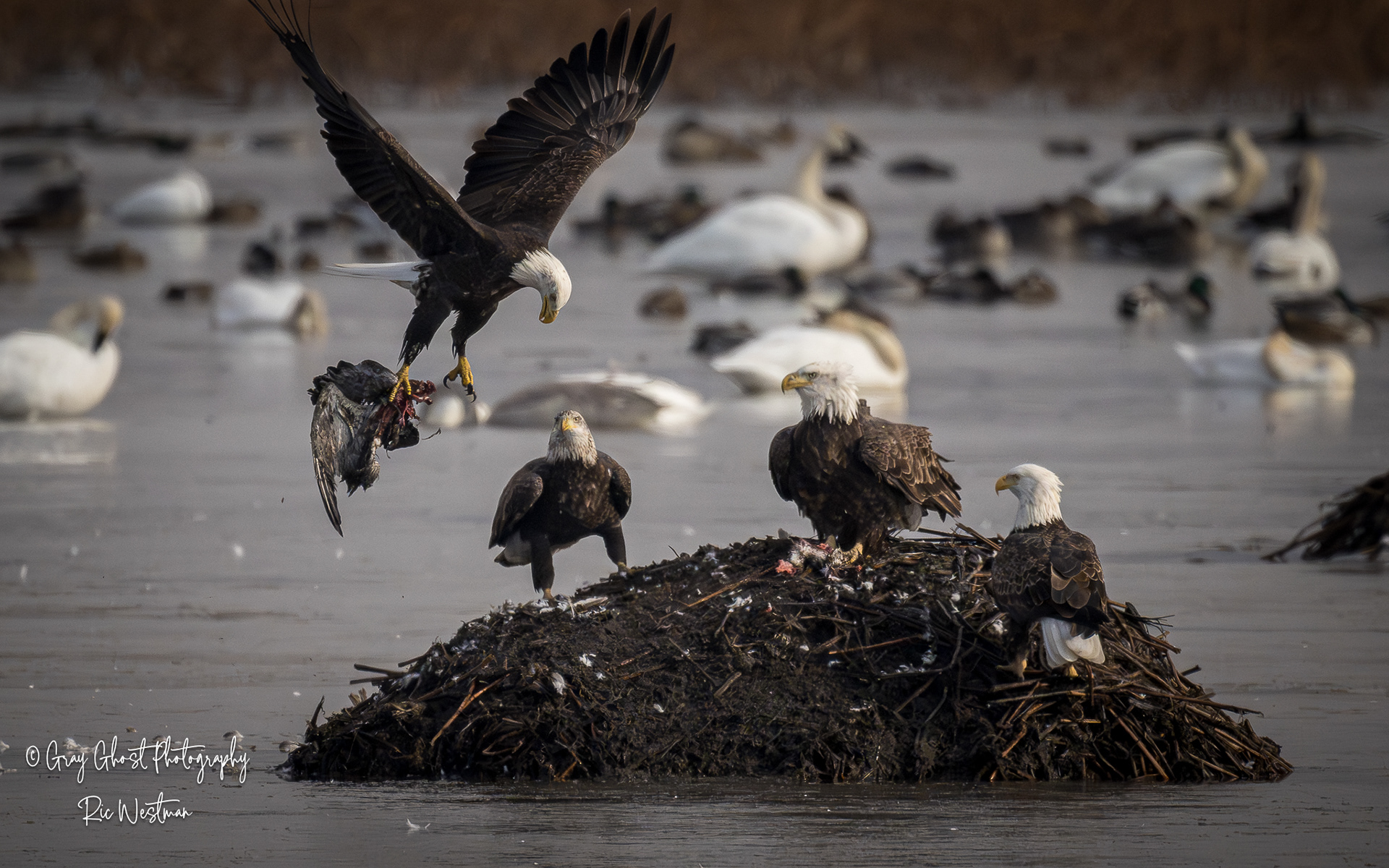Wintering eagles and snow geese make for some interesting moments.
