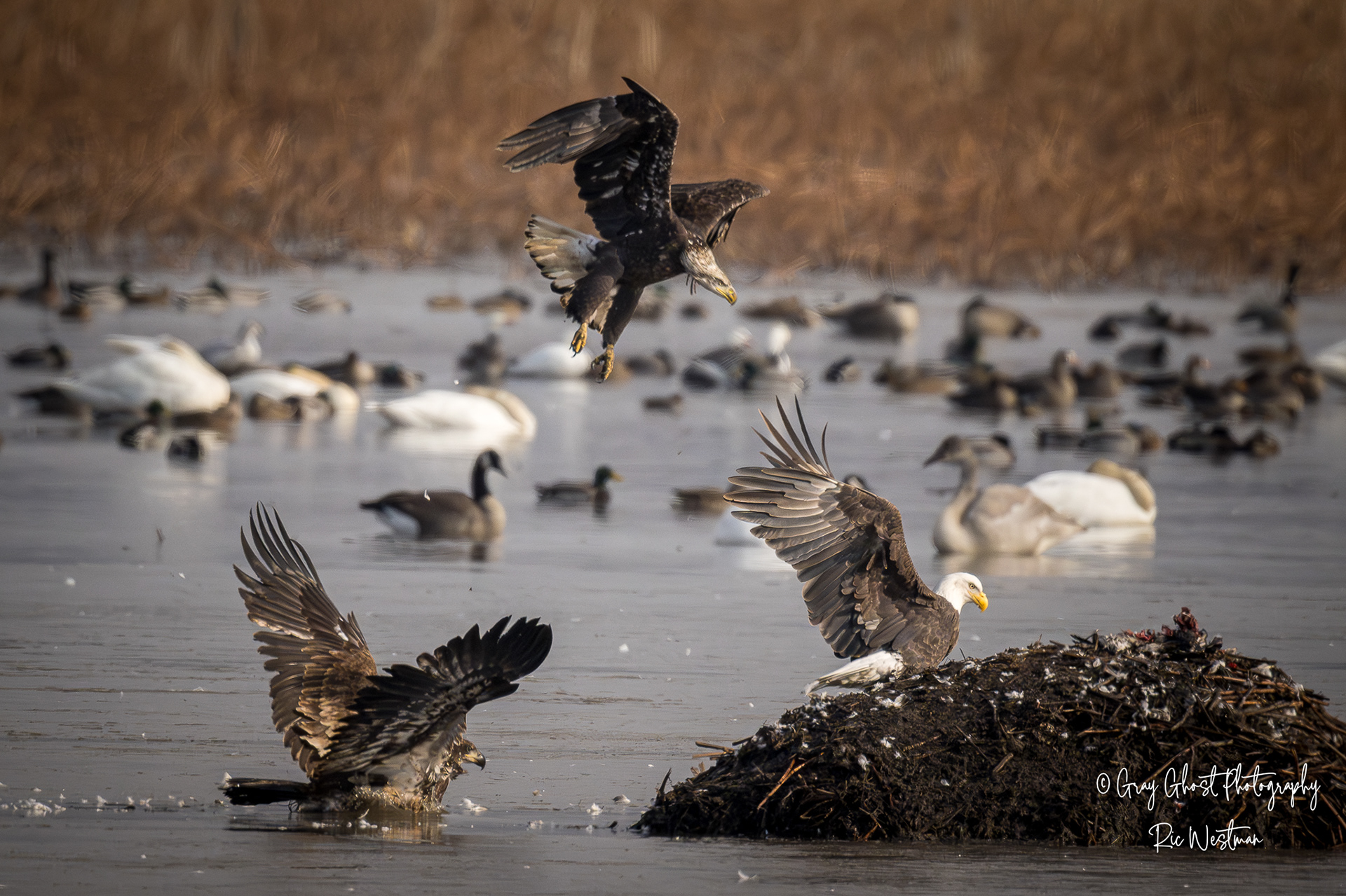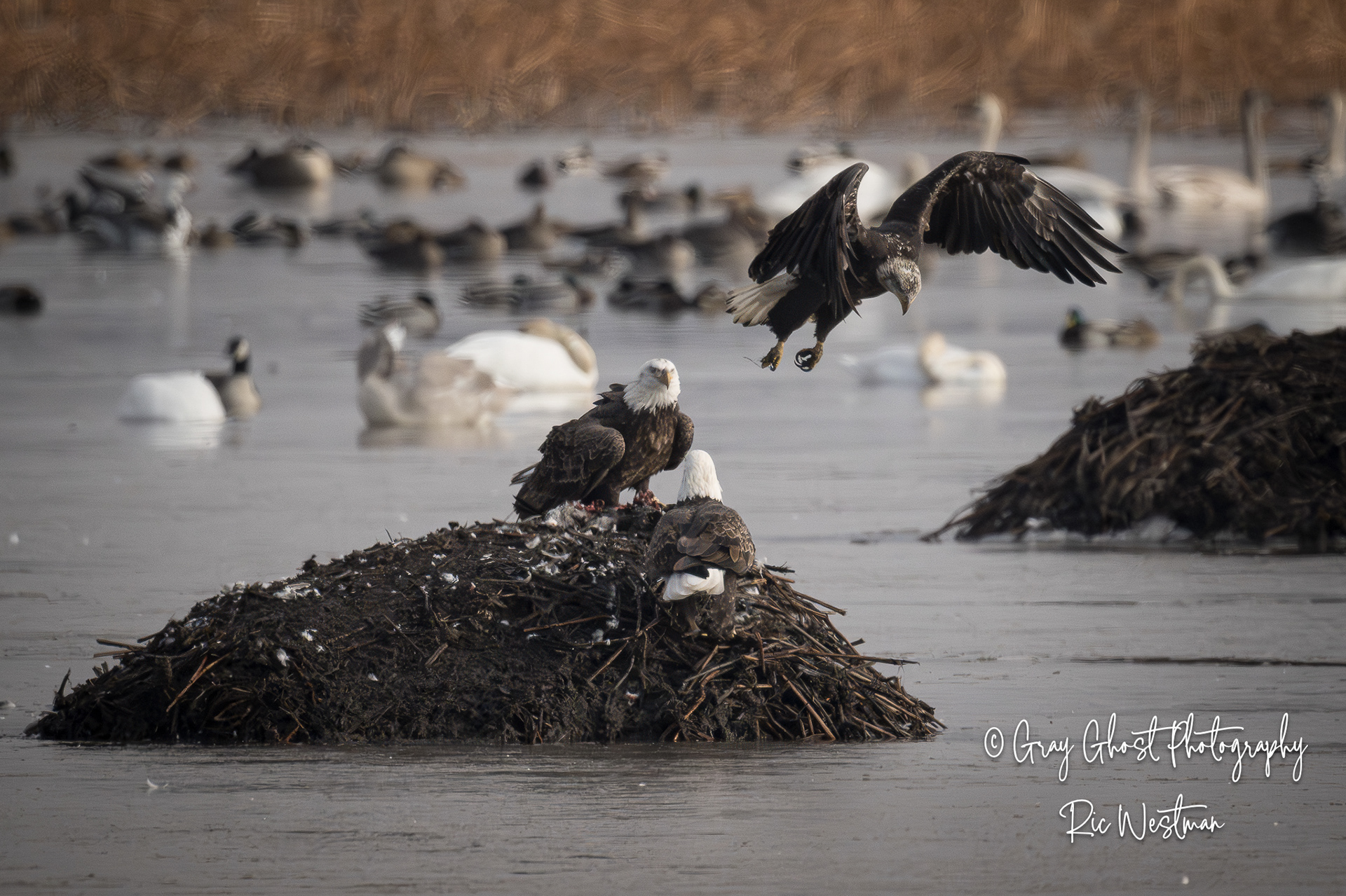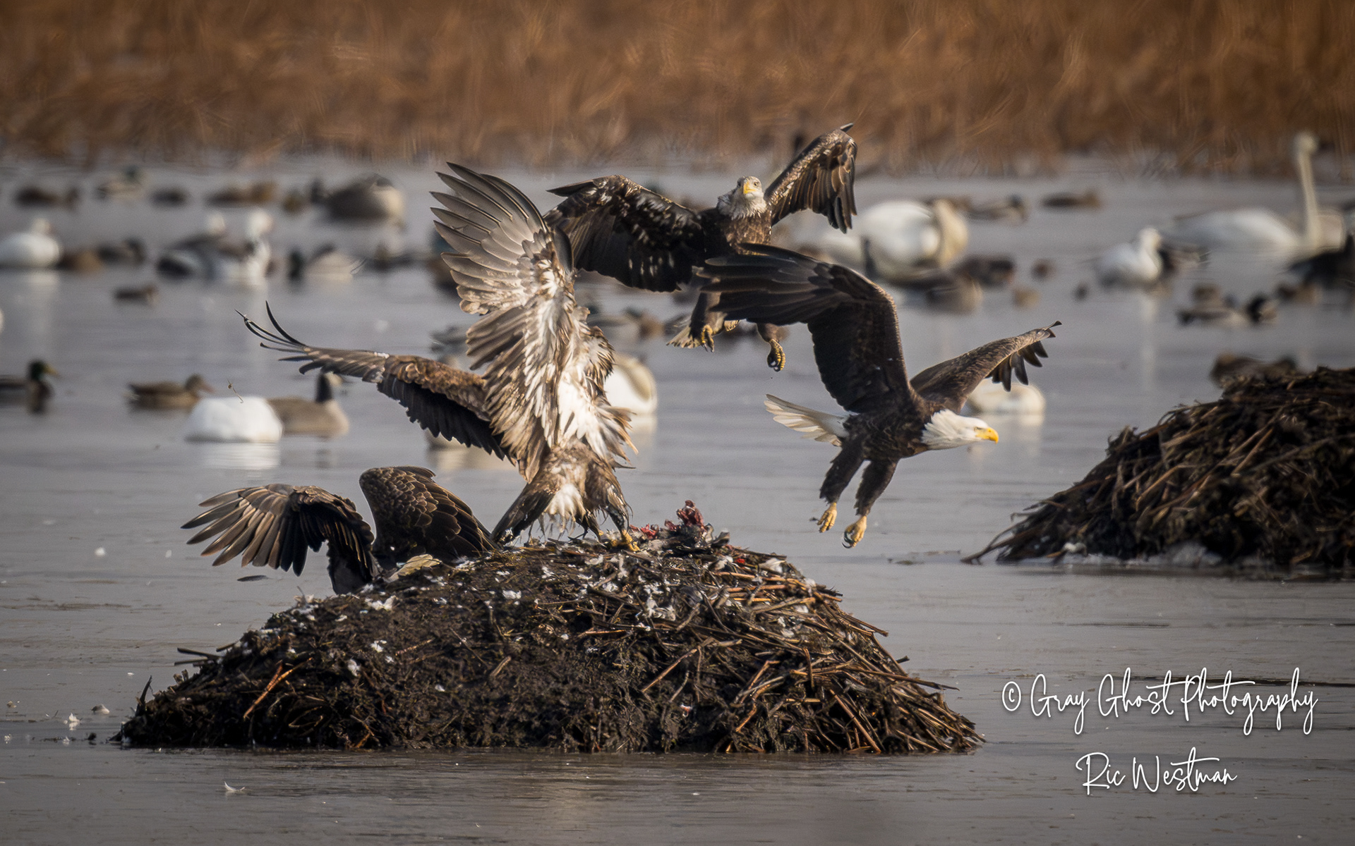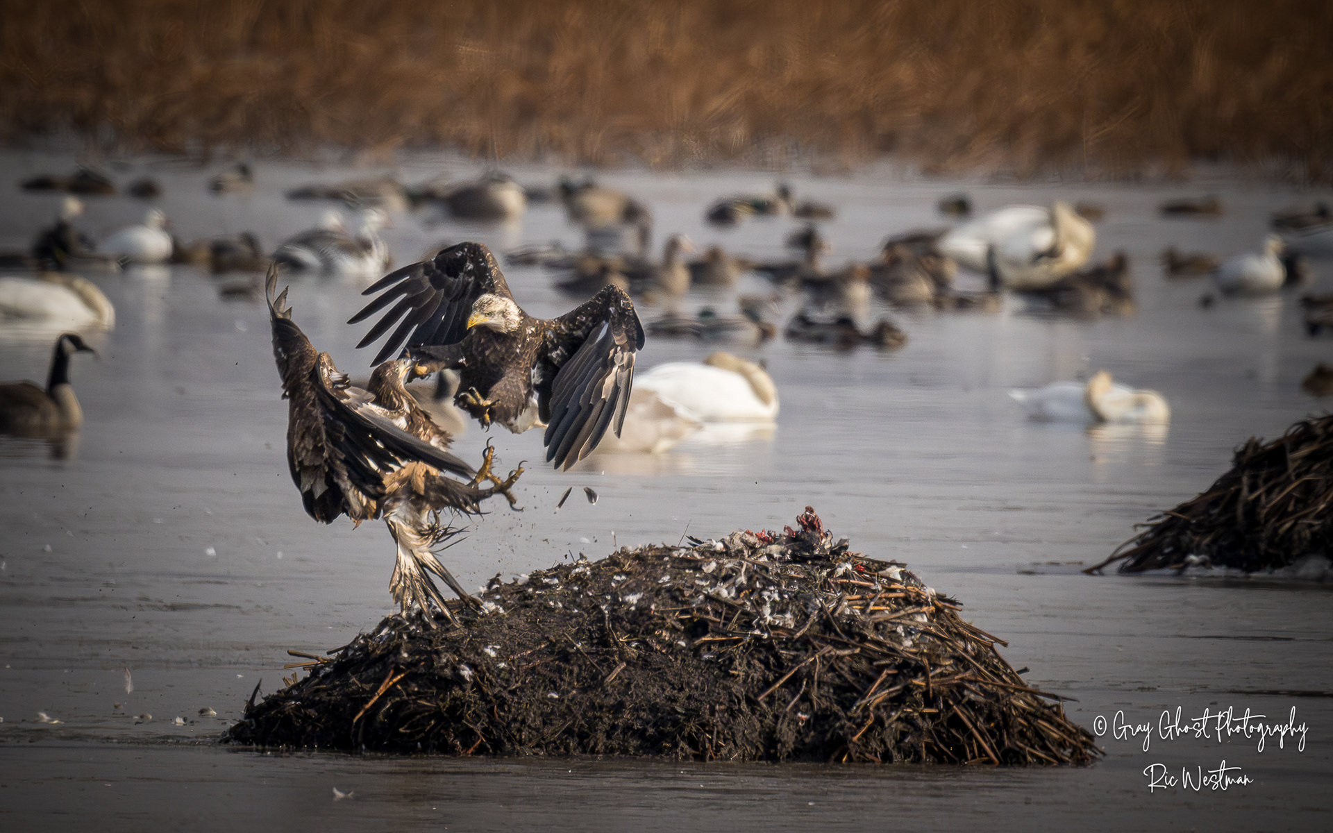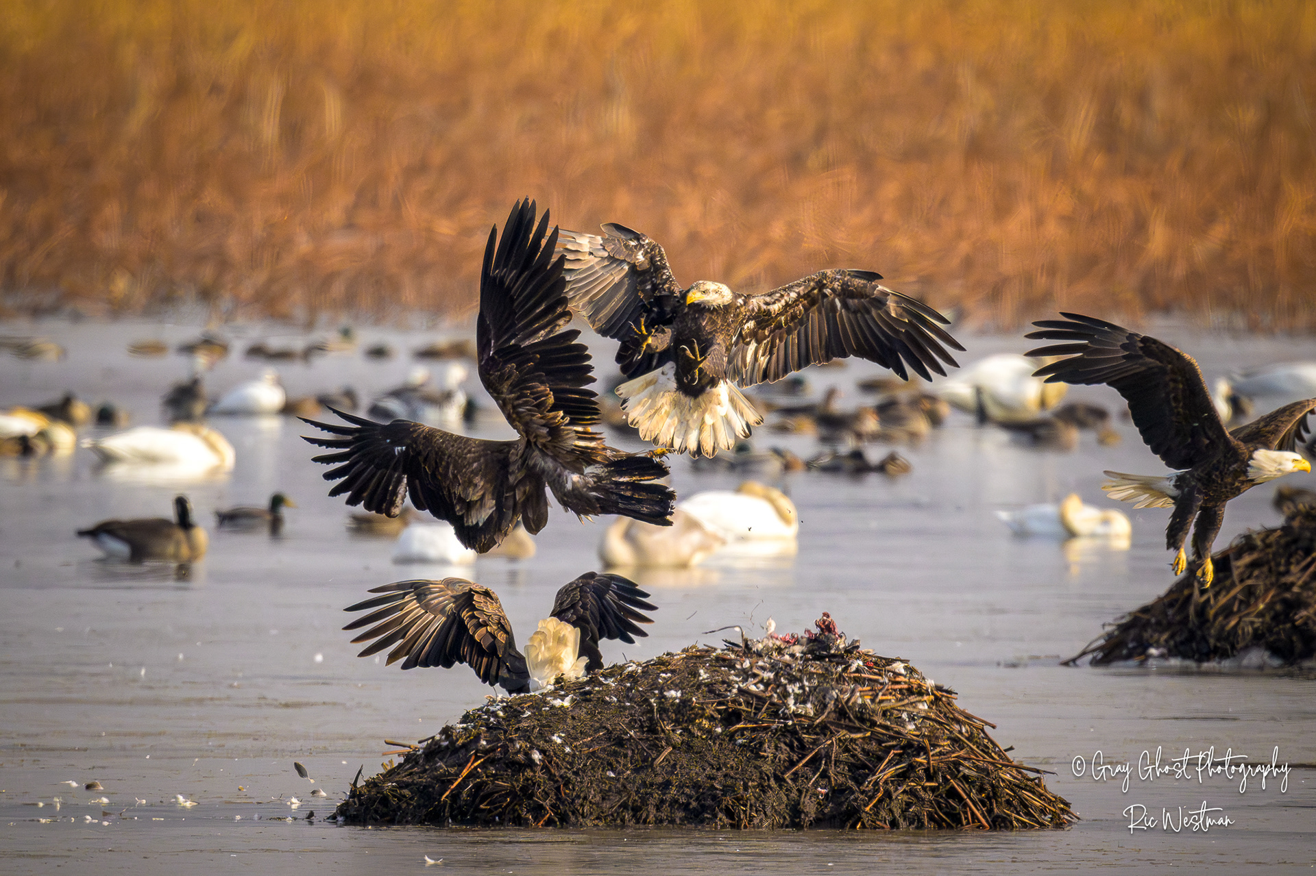 Wintering eagles and snow geese make for some interesting moments.