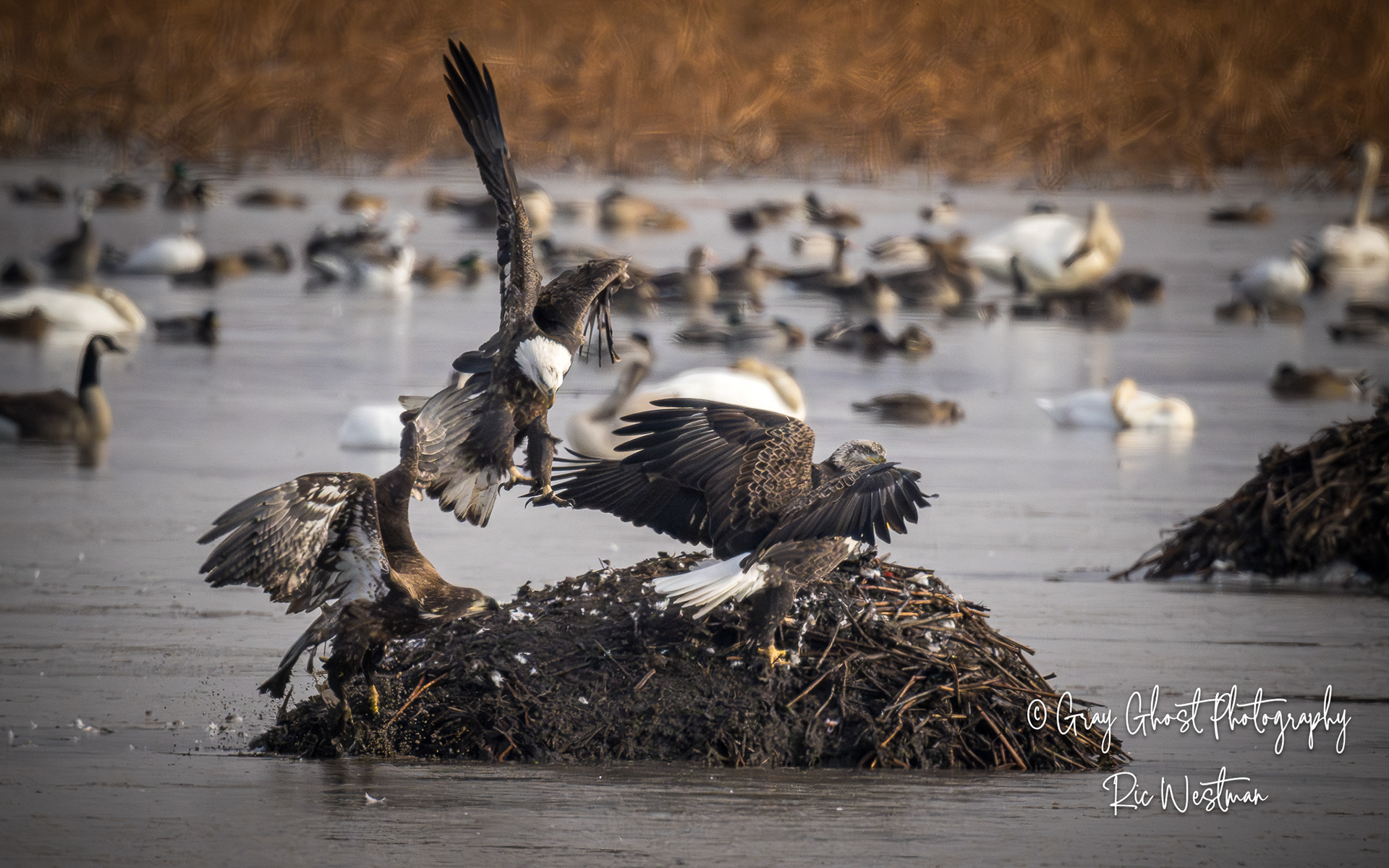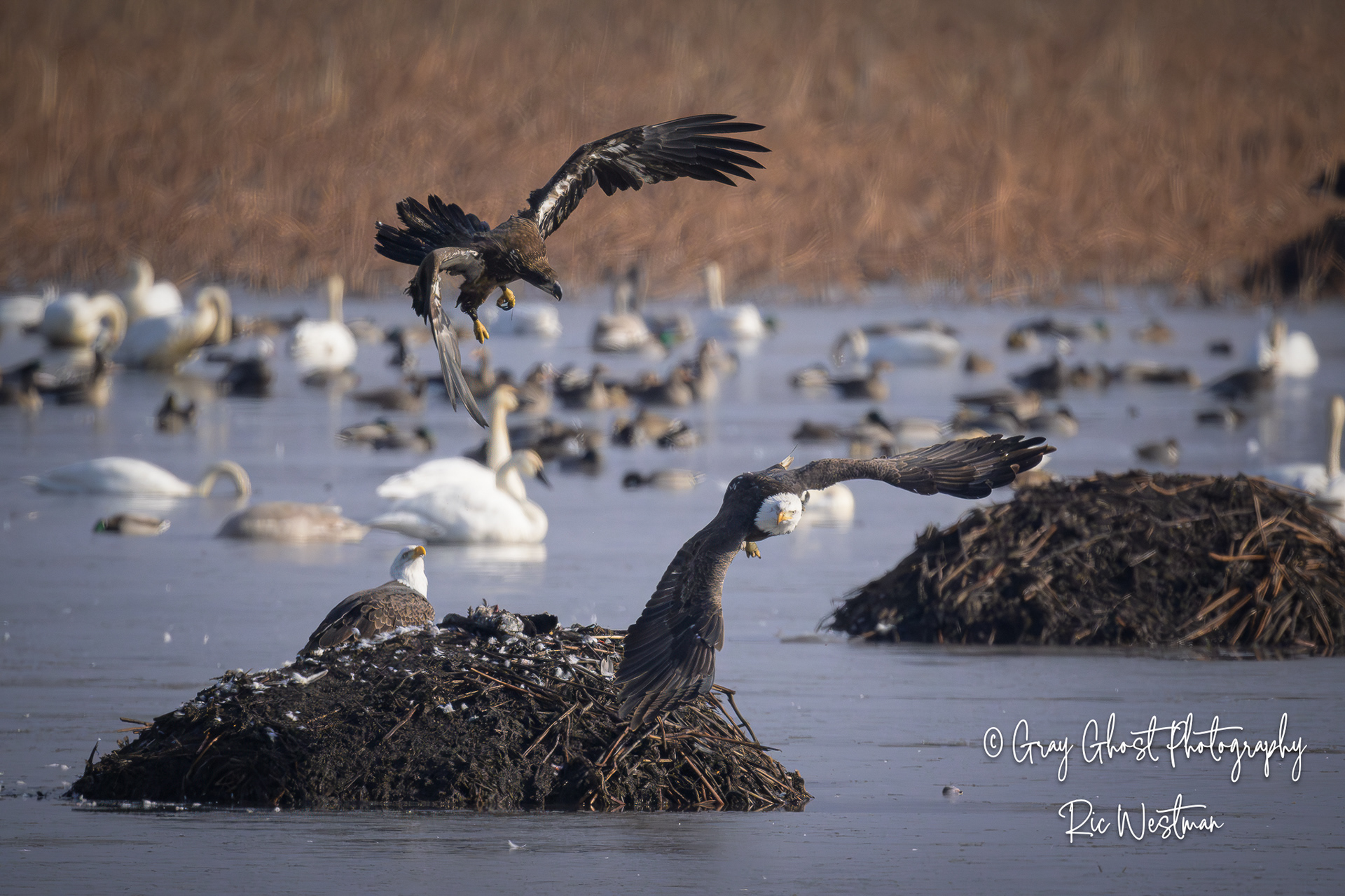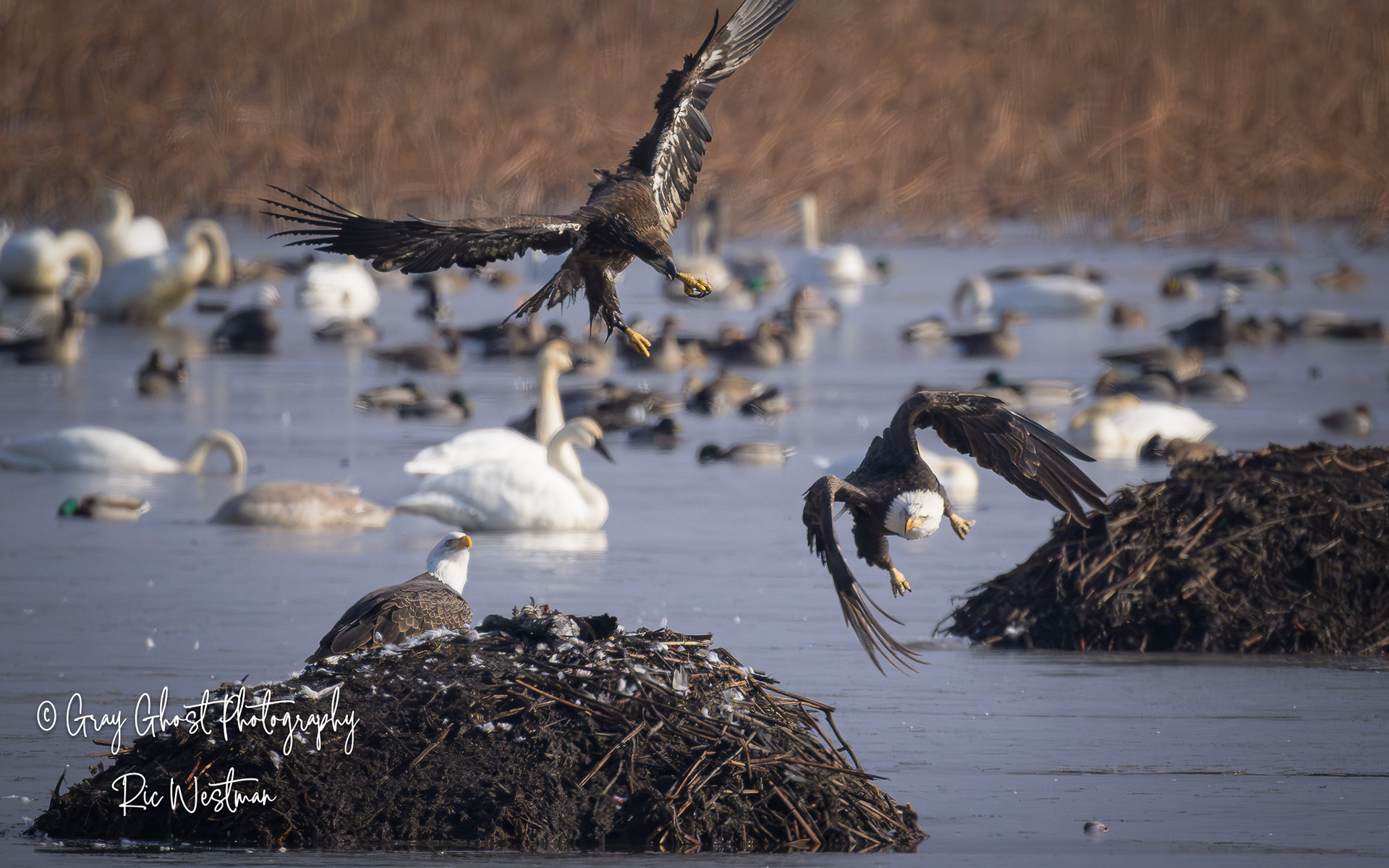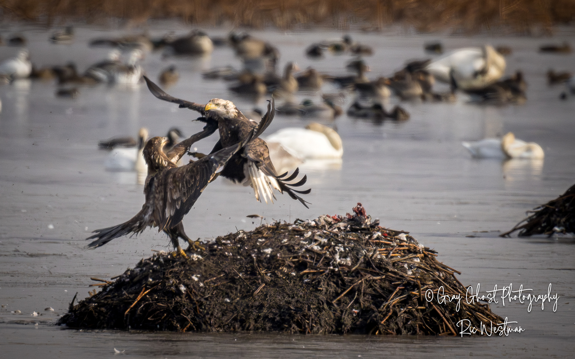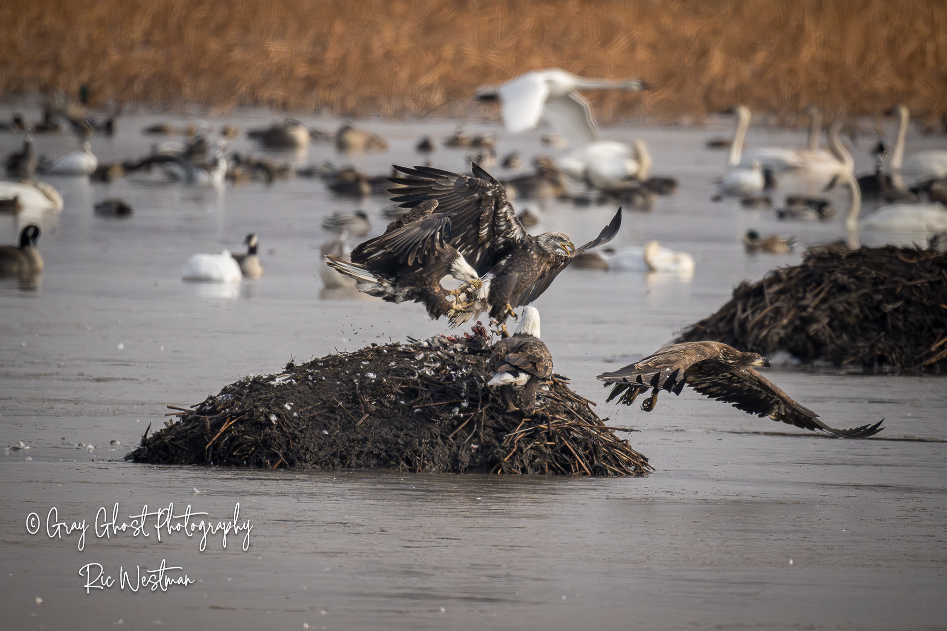 Wintering eagles and snow geese make for some interesting moments.